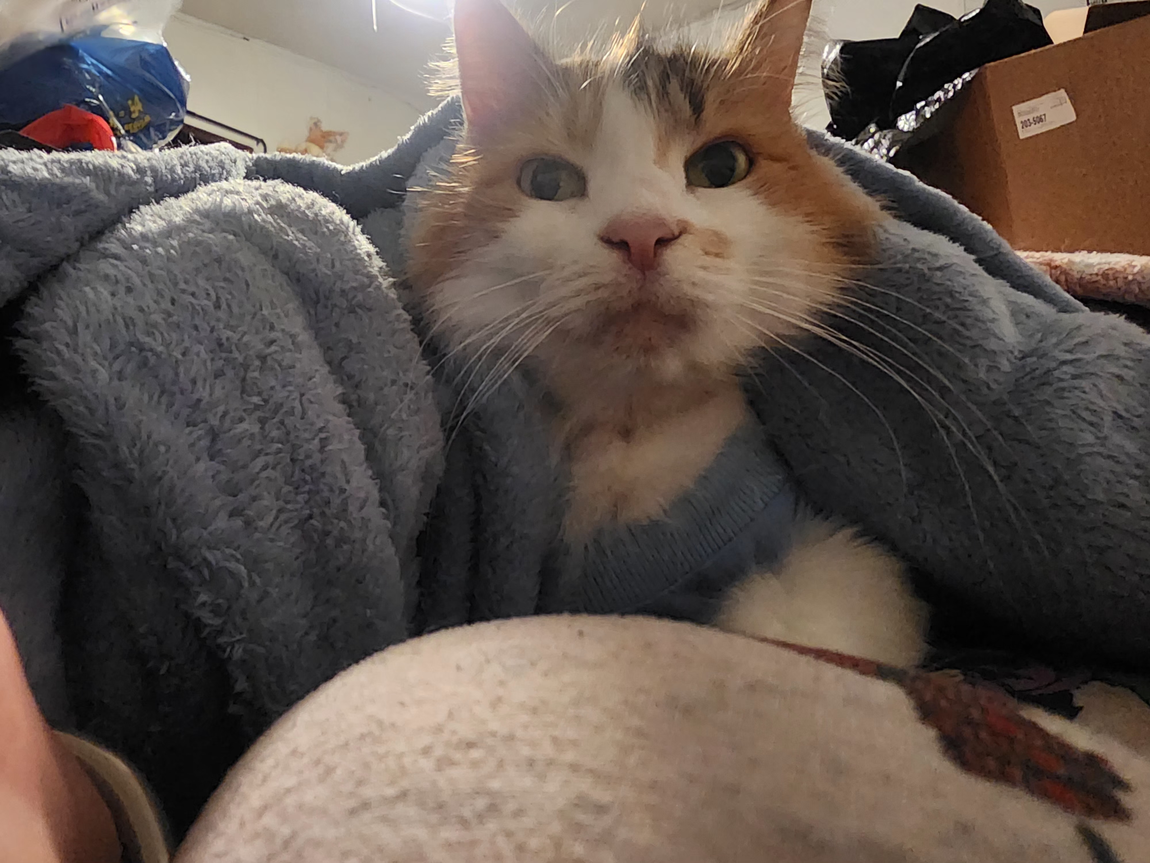 She is a typical orange calico: a food-thief, a world-class cuddler, and despite her age, she still has the playful energy of a cat half her years.