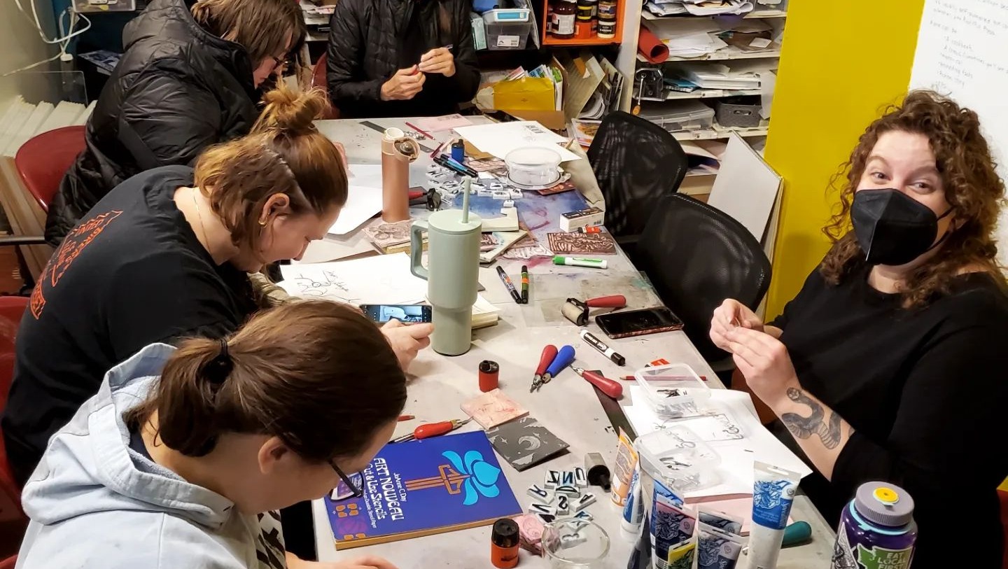 Scene from one of our monthly Block Printing workshops!