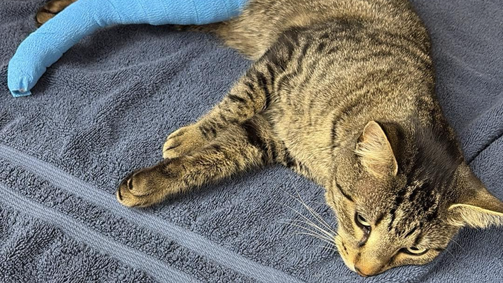 Hello friends, I am in need of some help for my cat, my Rat. (He's a cat named rat). Rat showed up late one night with a skinned inner leg. We have literally no idea how this happened. And we had just assumed he got caught somewhere and hurt himself getting free. We didn't know the extent of the damage. Apparently he had broken his major thigh bone, which is an expensive surgery. Amputation would have been as expensive as well. And I refused to put him down.