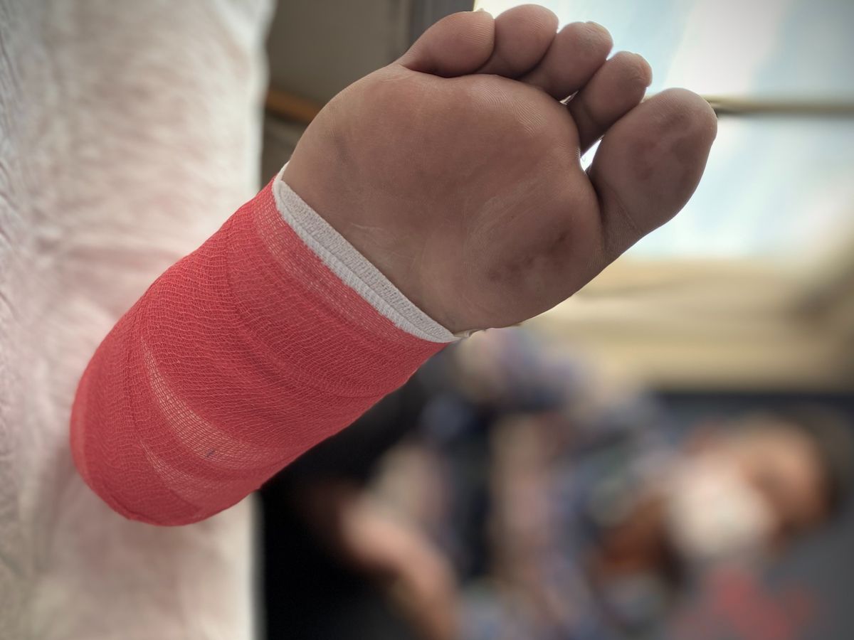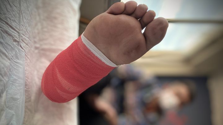 About one year ago, Raza was attacked, suffering a stab wound to his thigh. As a result of this, he unfortunately lost all sensitivity in his right foot and developed a foot drop. Then four months ago, Raza stepped onto glass, leading to a minor but ultimately devastating wound of his heel. Due to his loss of sensitivity, the wound gradually got worse, without him noticing any warning signs like pain or infection.