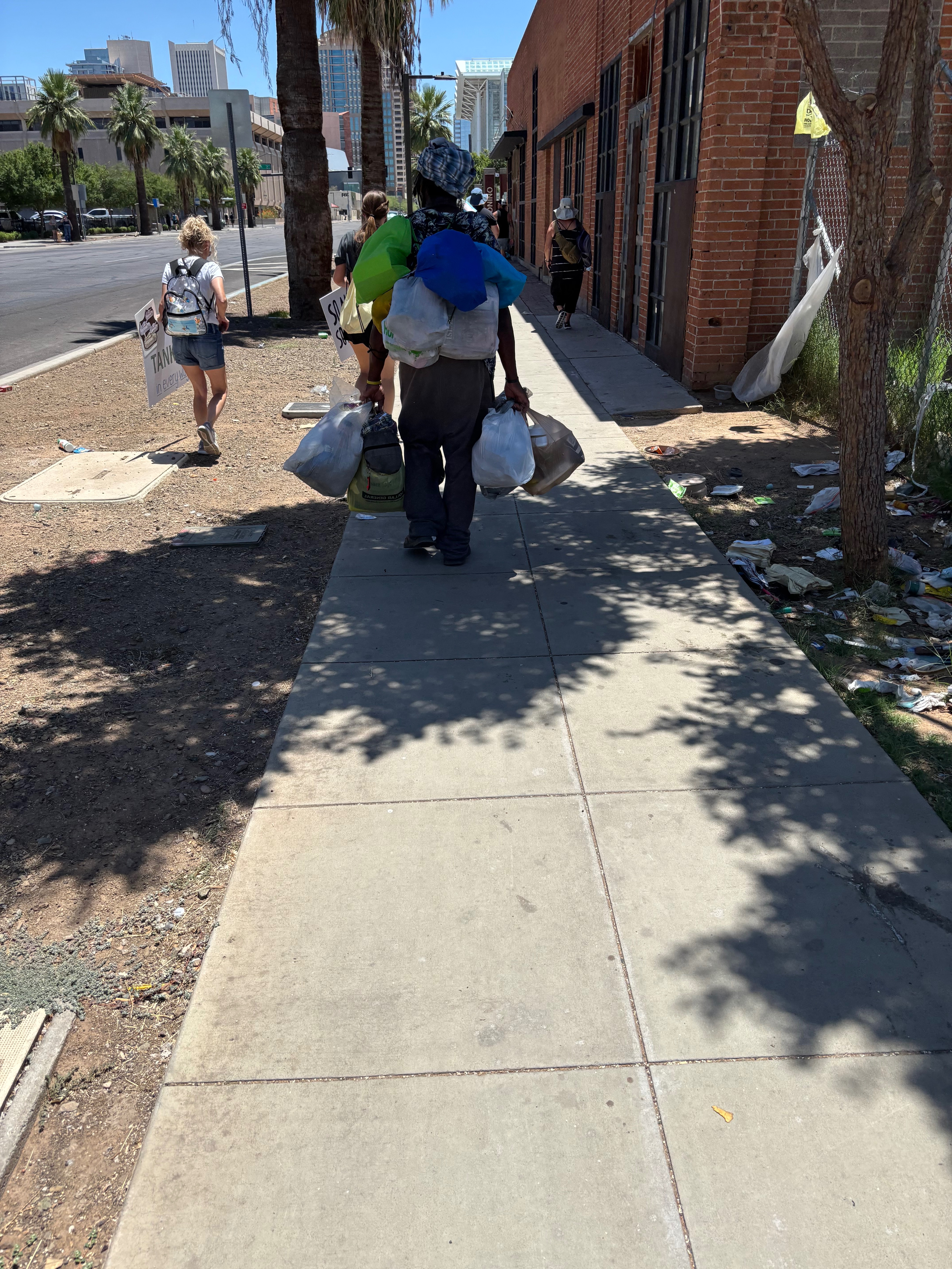 After attending a portion of the rally, I realized that nobody was talking to each other and as we all walked back to our cars in 108° weather, no one even acknowledged those on the streets that were suffering so greatly. Not that they looked and looked away. They didn’t even bother to look. I carried around a large sign that read, “WWJD – you know the answer.” I just wanted people to take a second and think. And if they didn’t know what it meant, maybe they would Google it or whatever and figure it out for themselves. Just food for thought, that’s all. If you’re religious or not, there are some good lessons to be learned even without the religious devotion. Just love each other and help each other and accept each other and otherwise mind your own business. But if we’re not helping others in great need, what are we really doing? Complaining? Expecting somebody else to do it? Not wanting to help because when you financially help, you never see change? Well, here’s a chance to make a direct impact on one individual’s life. That’s how it starts. One at a time. If not, the problem just exacerbates.