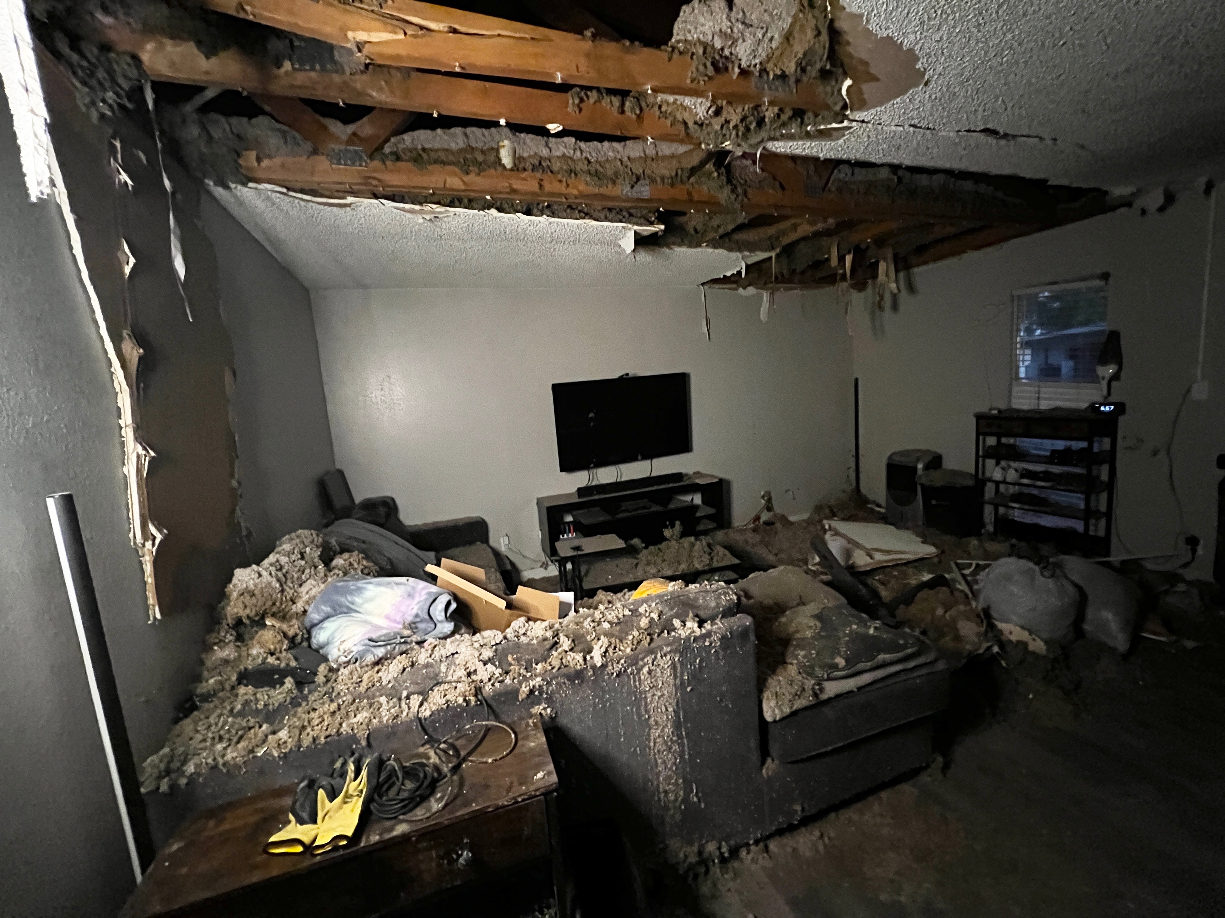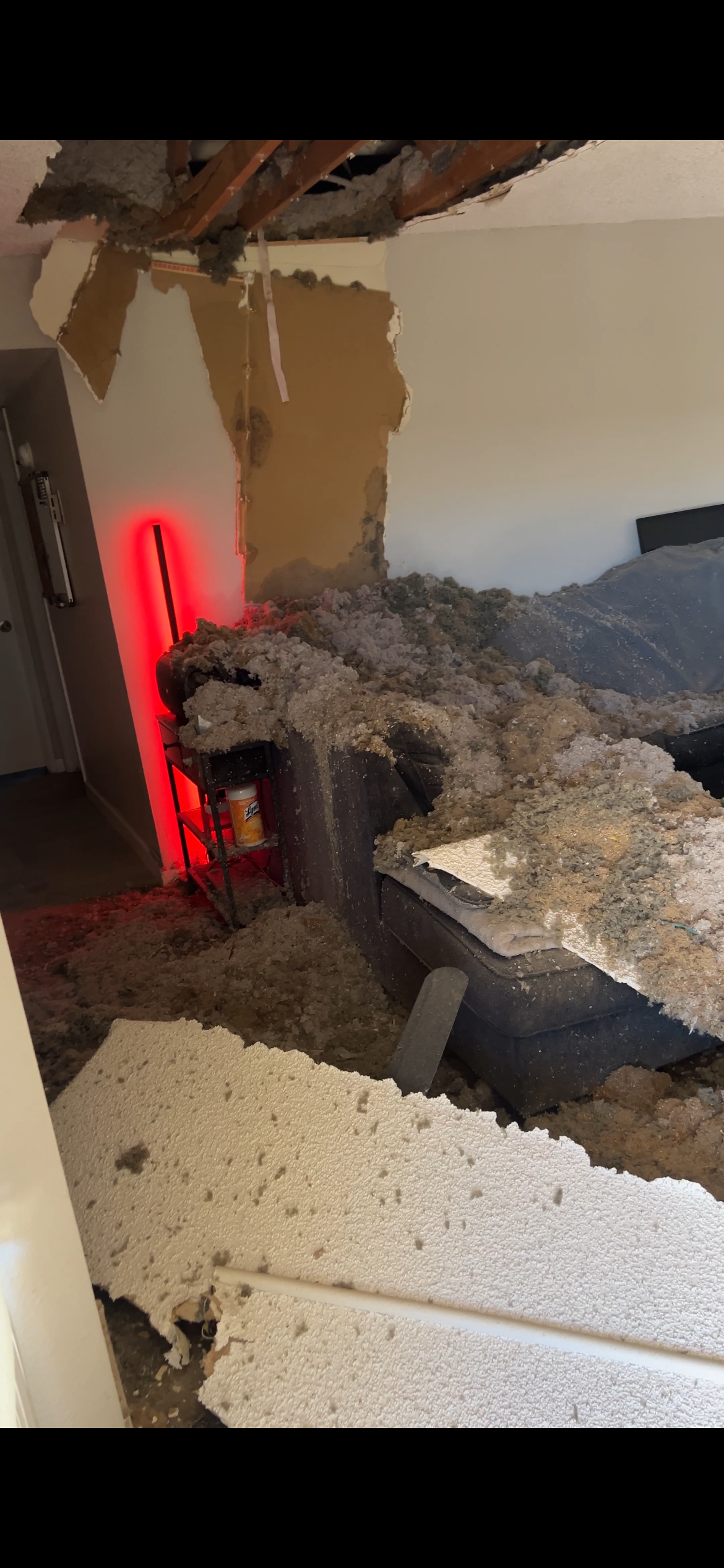 I’ve been able to get some help from places like Red Cross and Salvation Army where I’ve lightheadedly given blood and whole heartedly volunteered for many years, but I’m unfortunately ineligible to receive many services due to having the job I do. Sadly as well, I was paying for renters insurance through my apartment, but it wasn’t shared that it only covers damage to the building and nothing for my personal belongings, and now after my roof collapsed and destroyed many things, there is also asbestos covering everything and it has contaminated all of my furniture, clothes, mattress, etc., and left me with very few things that I’m trying to still salvage.