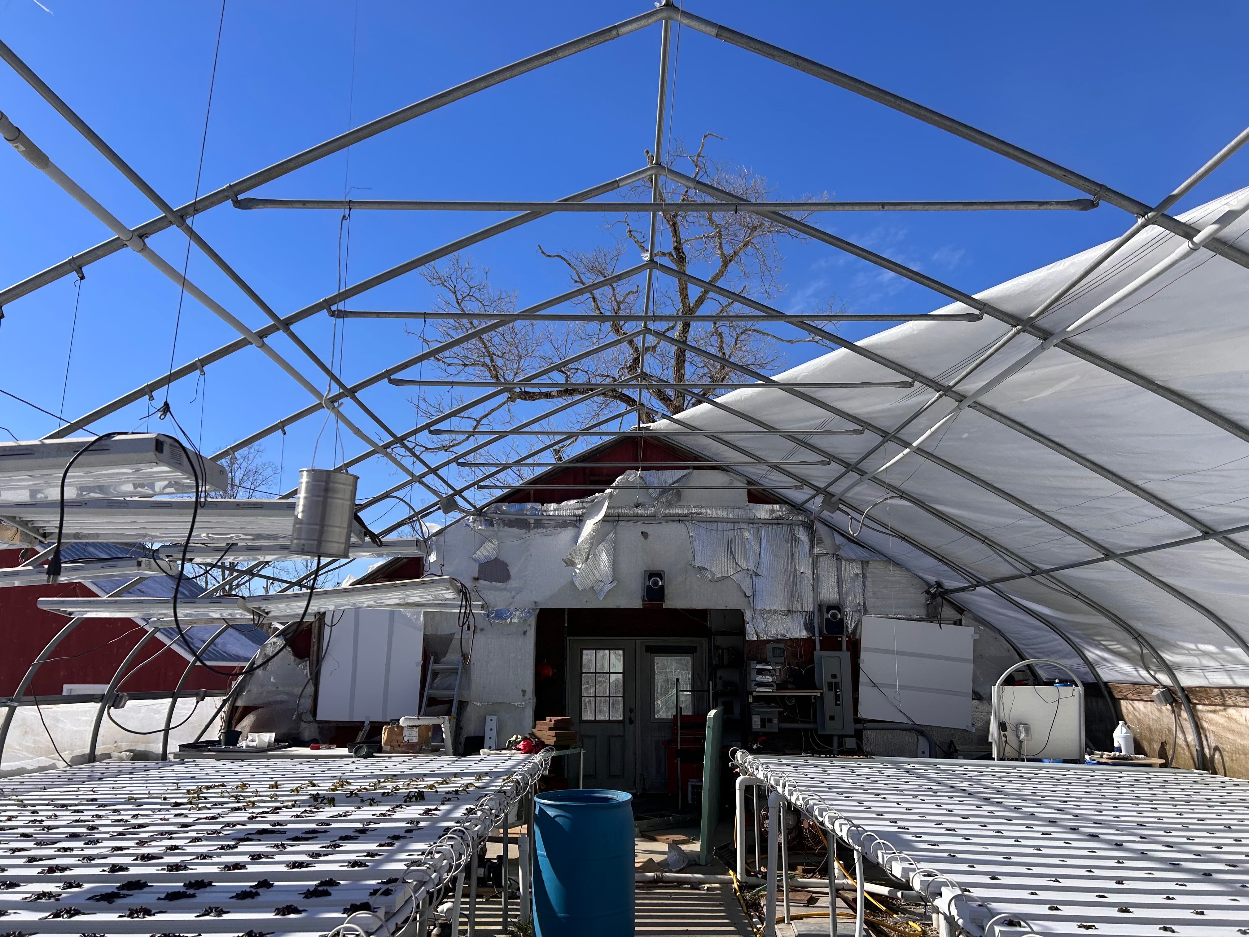 This greenhouse protects our early crops, extends our growing season, and allows us to grow consistently for our CSA members, schools, and local families. With it gone now, we’re facing: