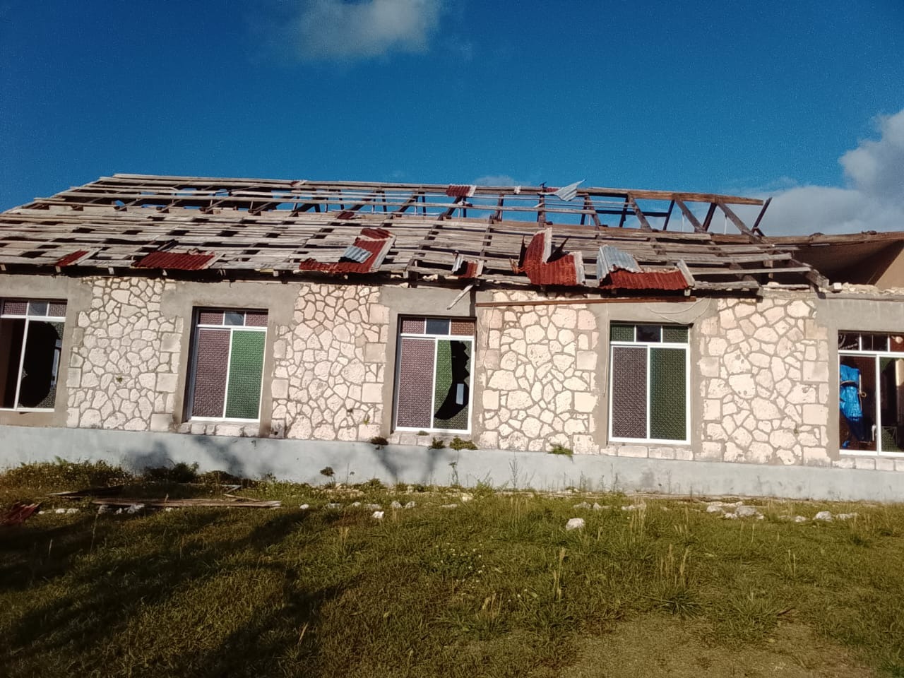 The school lost its computers along with essential office supplies. There is no safe place for drinking water during school hours. The school is without a roof currently, which is causing leaks into the lower floor.
