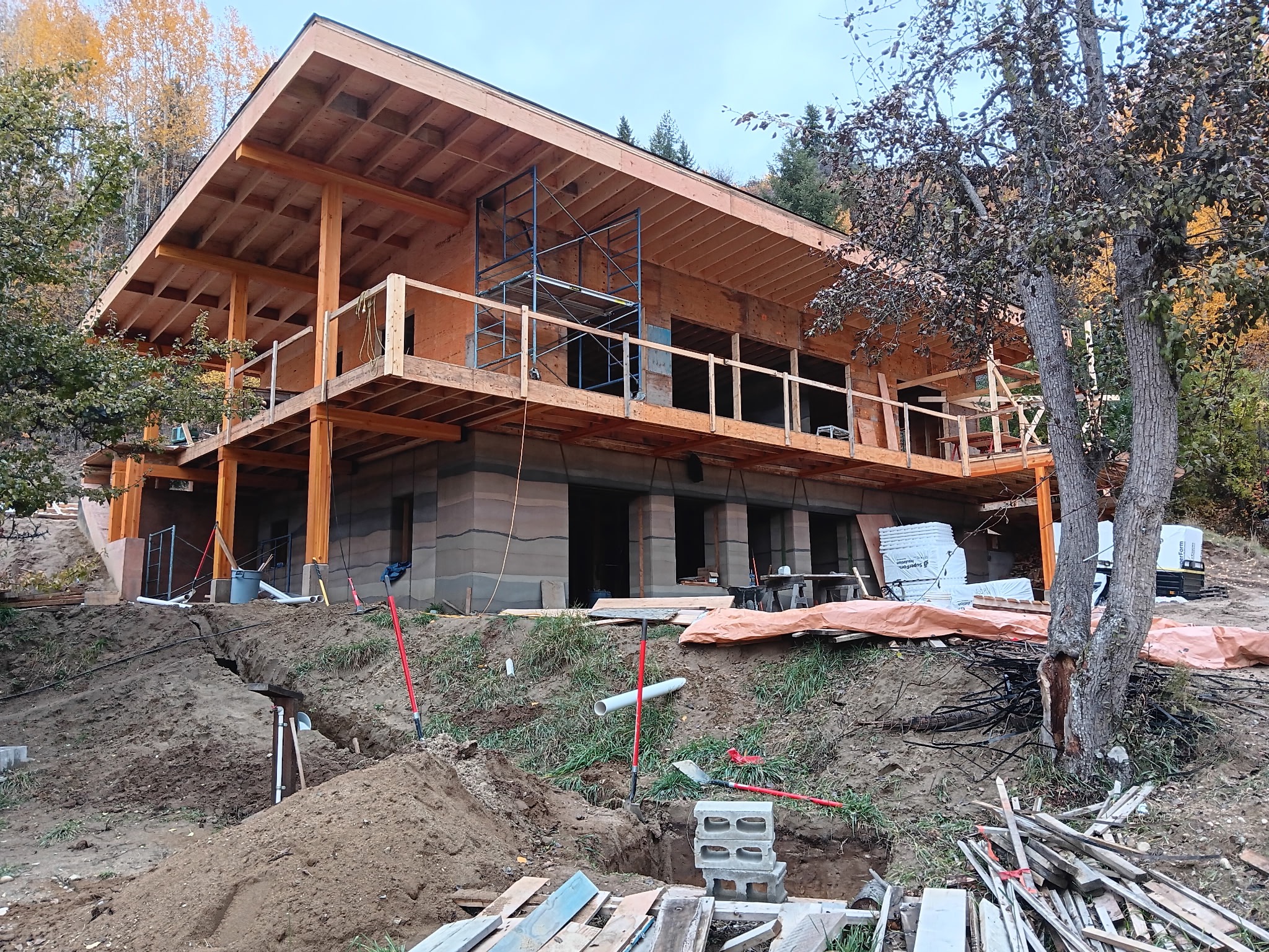 With tireless dedication, he worked alongside a rammed earth specialist, and engineer to design the home, gathering materials from all over Canada to create the stunning rammed earth walls. The main walls of the bottom floor of the house are made of rammed earth, with a conventional wood-framed top floor. Since 2023, he has poured his heart and soul into this project working with a small extremely hard working crew. By November 2025, he had finally put the trusses and roof on before the snow fell. His plan was to finish the interior during the winter, aiming for occupancy in the spring of 2026.