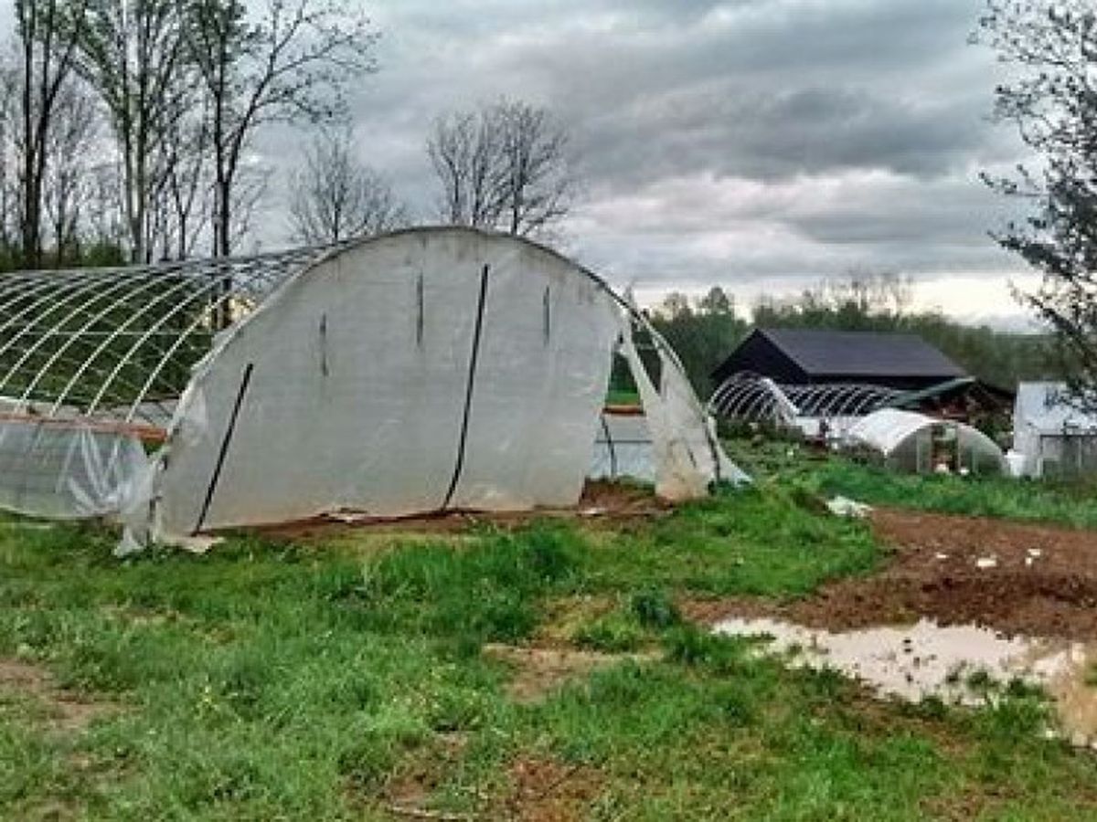 storm. In 15 minutes we lost our main greenhouse, vegetable wash room, and additional storage buildings and our barn suffered roof damage.