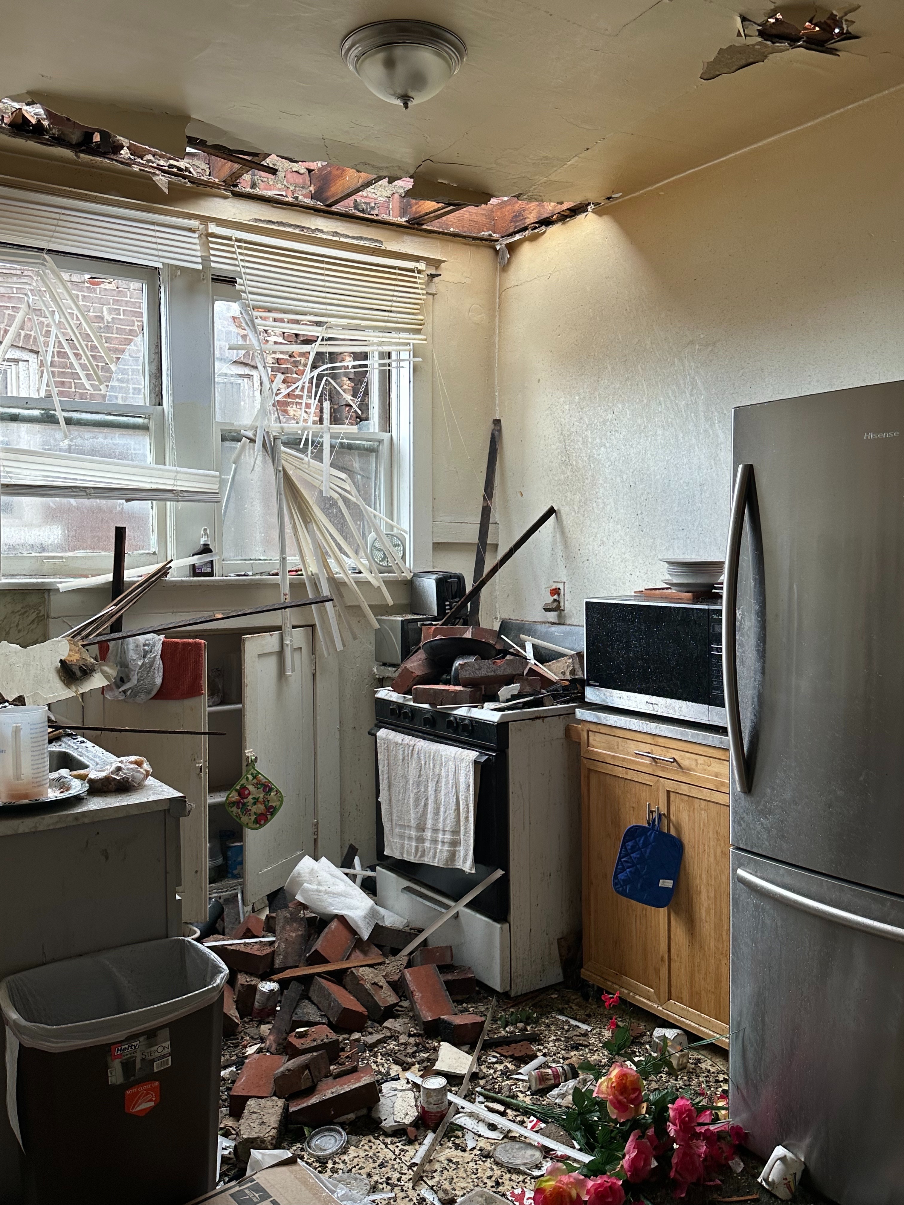 The Mitchell-Walton family home in North St. Louis has been a cornerstone for five generations, ever since it was purchased by David Mitchell, a Black World War I veteran, and his son Joe, a Vietnam veteran. This house has always represented more than just shelter—it’s been a symbol of family love, unity, and the power of cooperation. My father, Peter Walton, grew up here, and now four of us—myself, my brother, and our parents—are all displaced after an EF3 tornado tore through our neighborhood. Both of my parents are disabled and face significant mobility challenges, and one relies on oxygen daily, which makes our situation even more urgent. As we huddled together in a closet, we felt rainwater pouring in, and soon realized the entire roof and hundreds of bricks had been ripped away, leaving several gaping holes that exposed our entire second floor to the elements. Bricks crashed down where my mother had been sitting just moments before. We are grateful to have survived, but our home is now uninhabitable, and each new rainfall causes more damage.