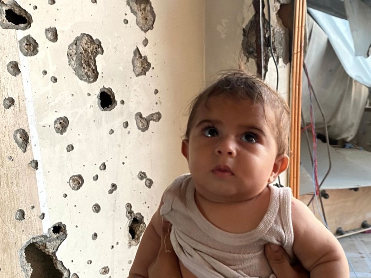 am Reem al-Faqaawi from Gaza, I have two children, Karim, 3 years old, and Mohammed, who was born during the war in very difficult circumstances and is now only seven months old. I am still in shock after the complete destruction of my house, which I had recently completed building and arranging, but now it is just rubble, with no wall to protect my children from falling outside, as my house is on the fifth floor, and no roof to shelter us from the heat in the summer and rain in the winter.