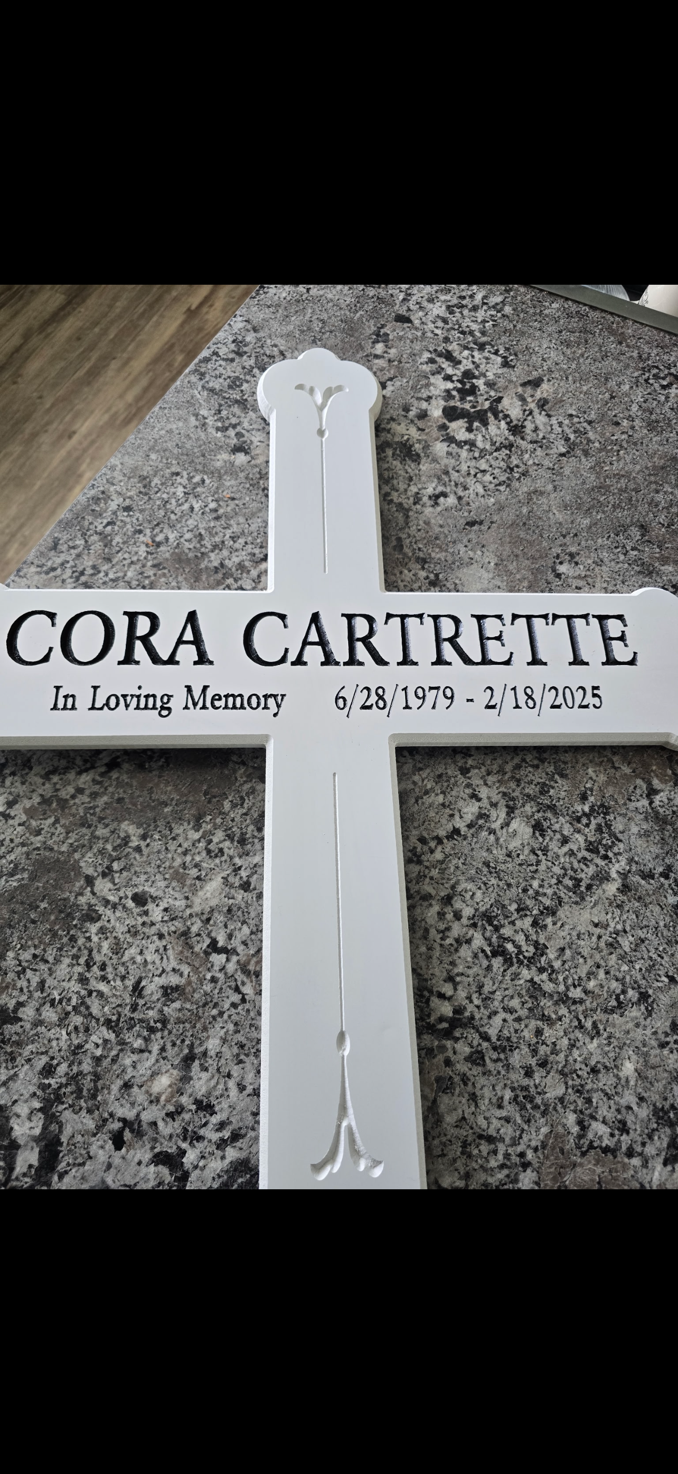 The original cross that was placed in February was a wooden cross beautifully made by her beloved coworkers and friends of the Chick-fil-A located in Leland, but due to it becoming weathered quickly, the decision was made to have a weatherproof cross made to withstand all outside conditions. We did place the original wooden cross back at the cross site, but unfortunately it was taken, again.
