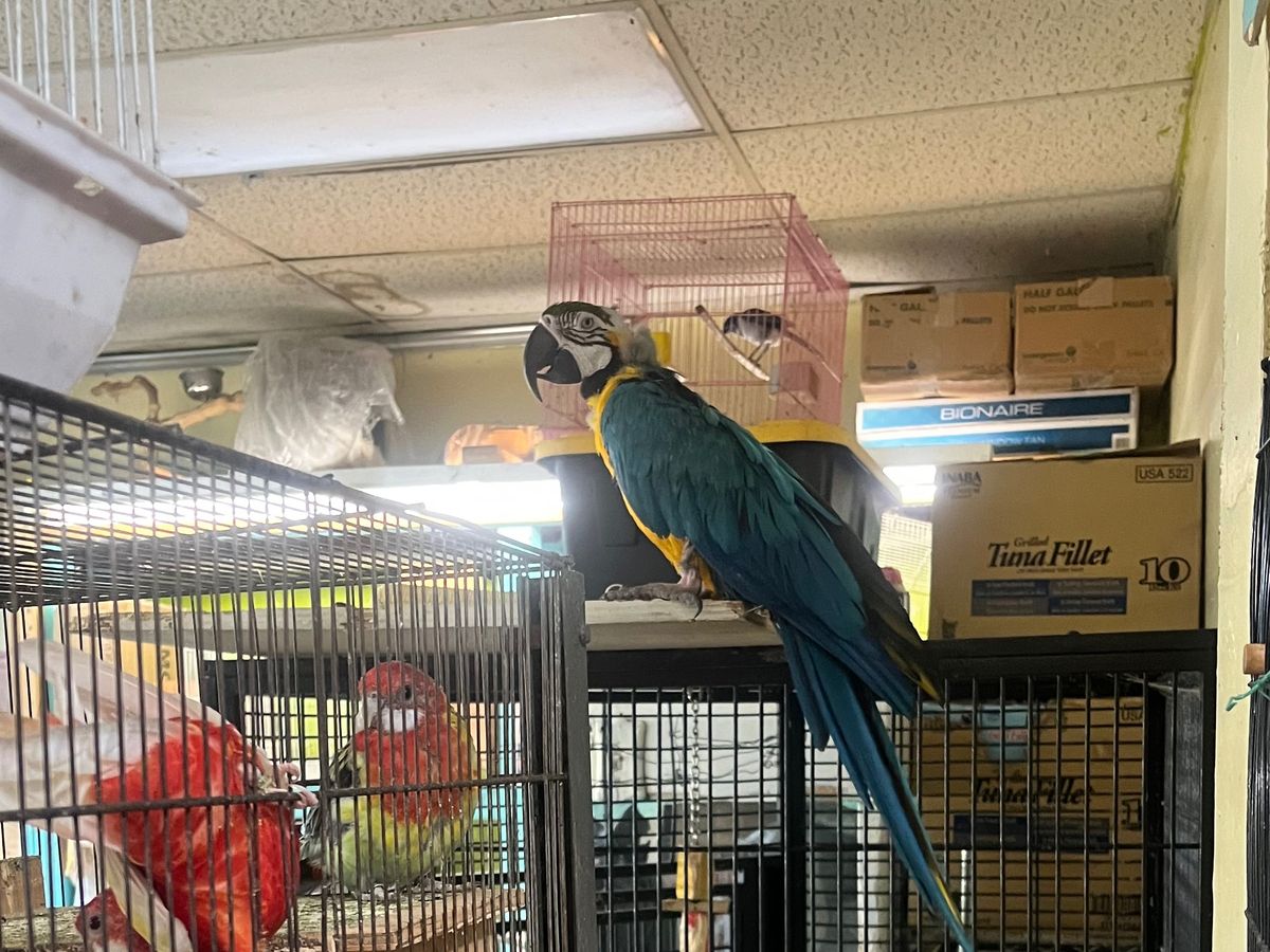 Lola Alayla, a beautiful blue and gold macaw, is trapped in a heartbreaking situation along with several other birds. Right now, they’re living in an old swap meet that’s dirty, unsafe, and filled with roaches and rats. The man who runs the place cares only about money, not the well-being of the helpless animals in his care. Lola and the other birds have suffered so much—some have been picked on and injured, losing feathers and hope. They’re not getting the food or love they need, and every day they spend there is another day in misery.