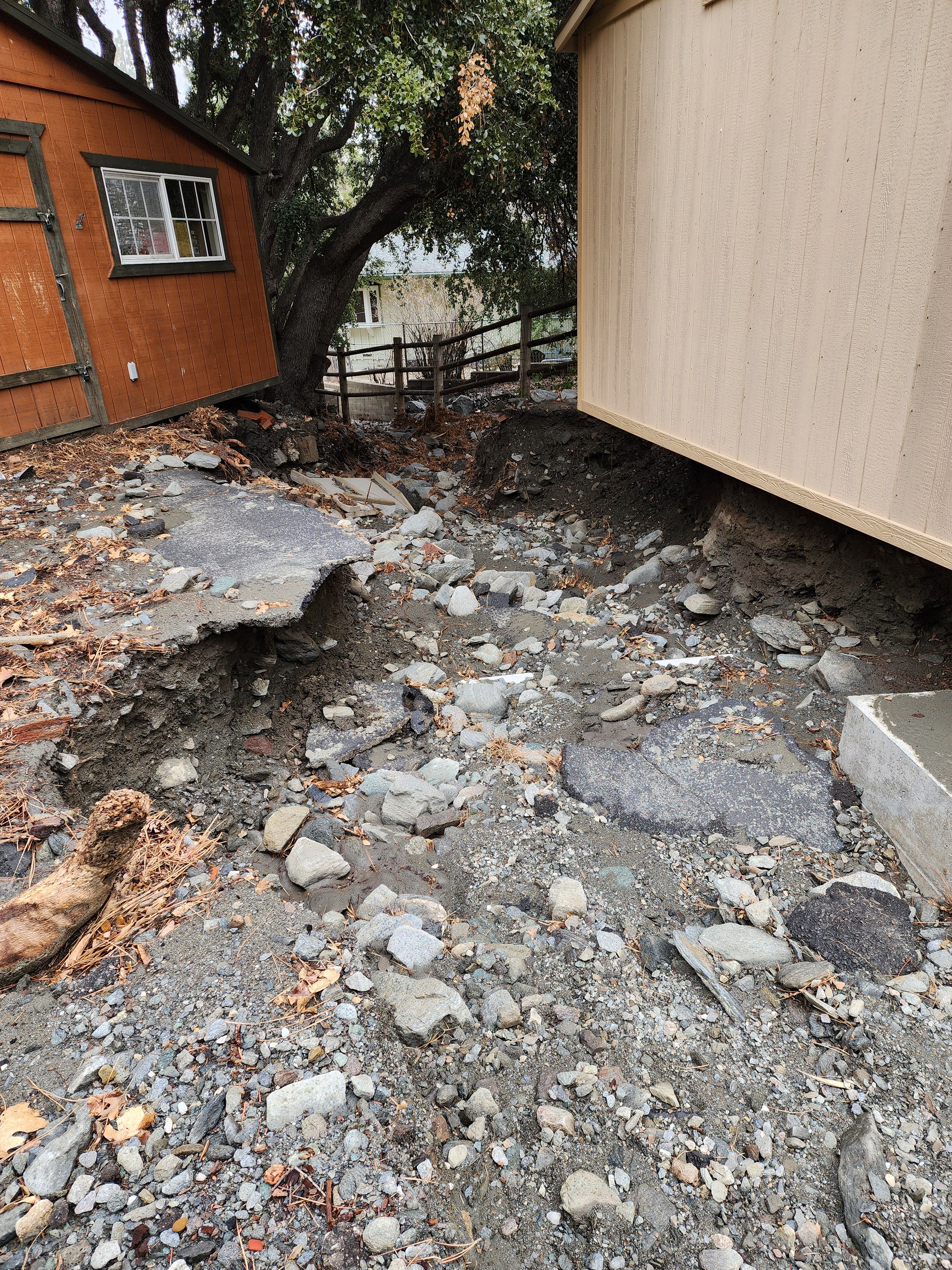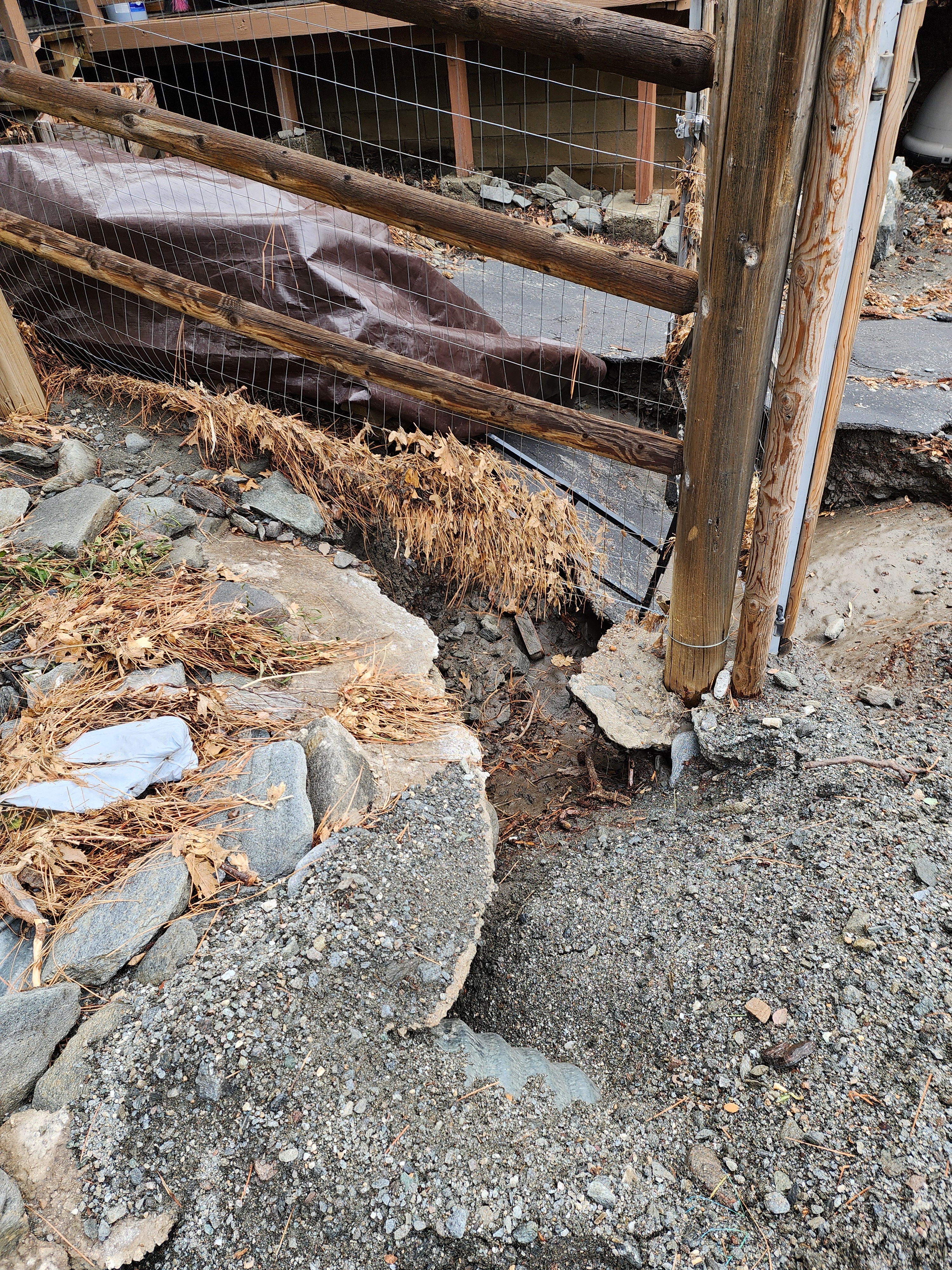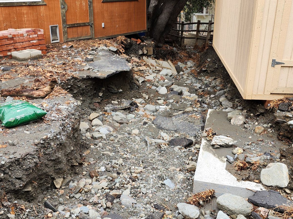 My Wrightwood home has always been my sanctuary, a place of peace and spiritual growth. But in an instant, Mother Nature turned my tranquility into a nightmare. The ground literally vanished from beneath me, leaving a 6-foot chasm where my backyard used to be. The massive flood waters didn't just ruin my landscape; it exposed my home’s vital infrastructure. My septic system—the very heart of my home's functionality—now sits precariously exposed to the elements. One more shift in the earth, one more big rain, and my home becomes uninhabitable. I am living on the edge of a catastrophe.