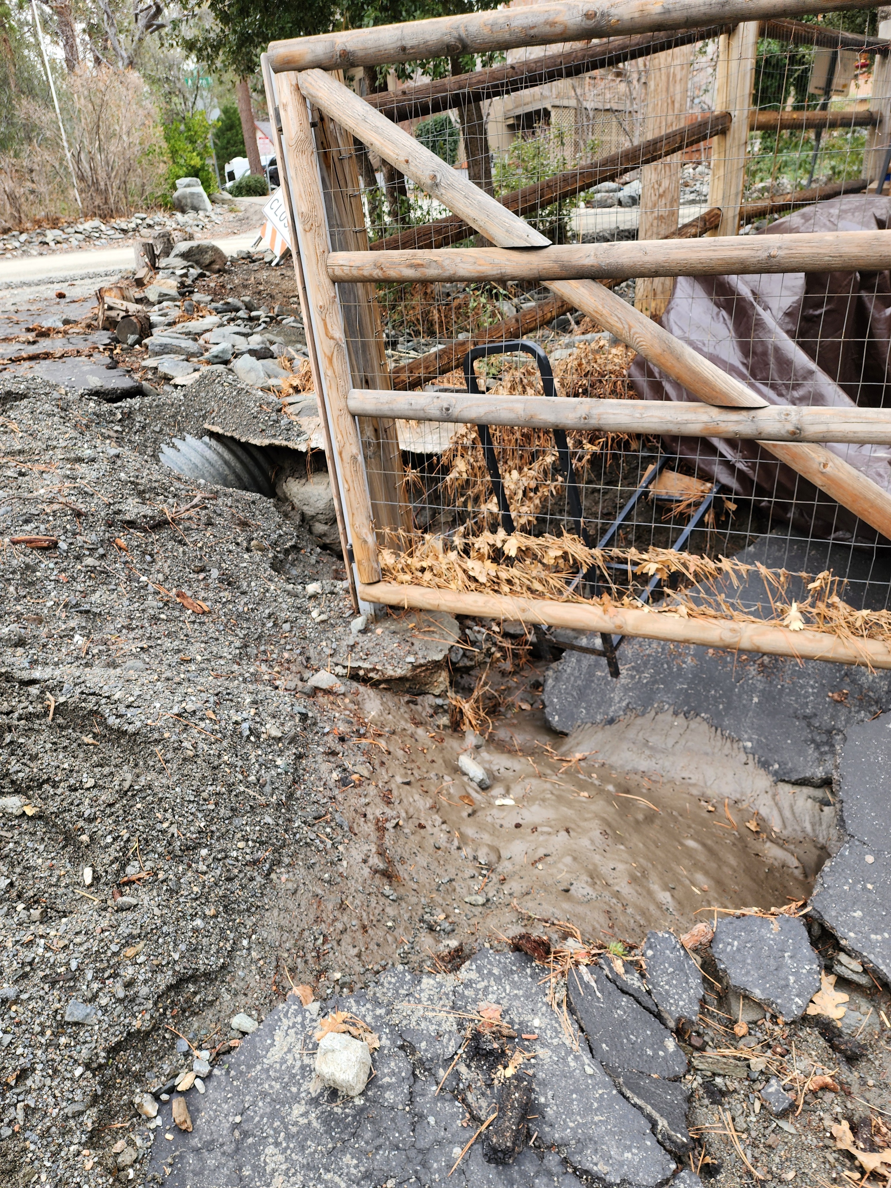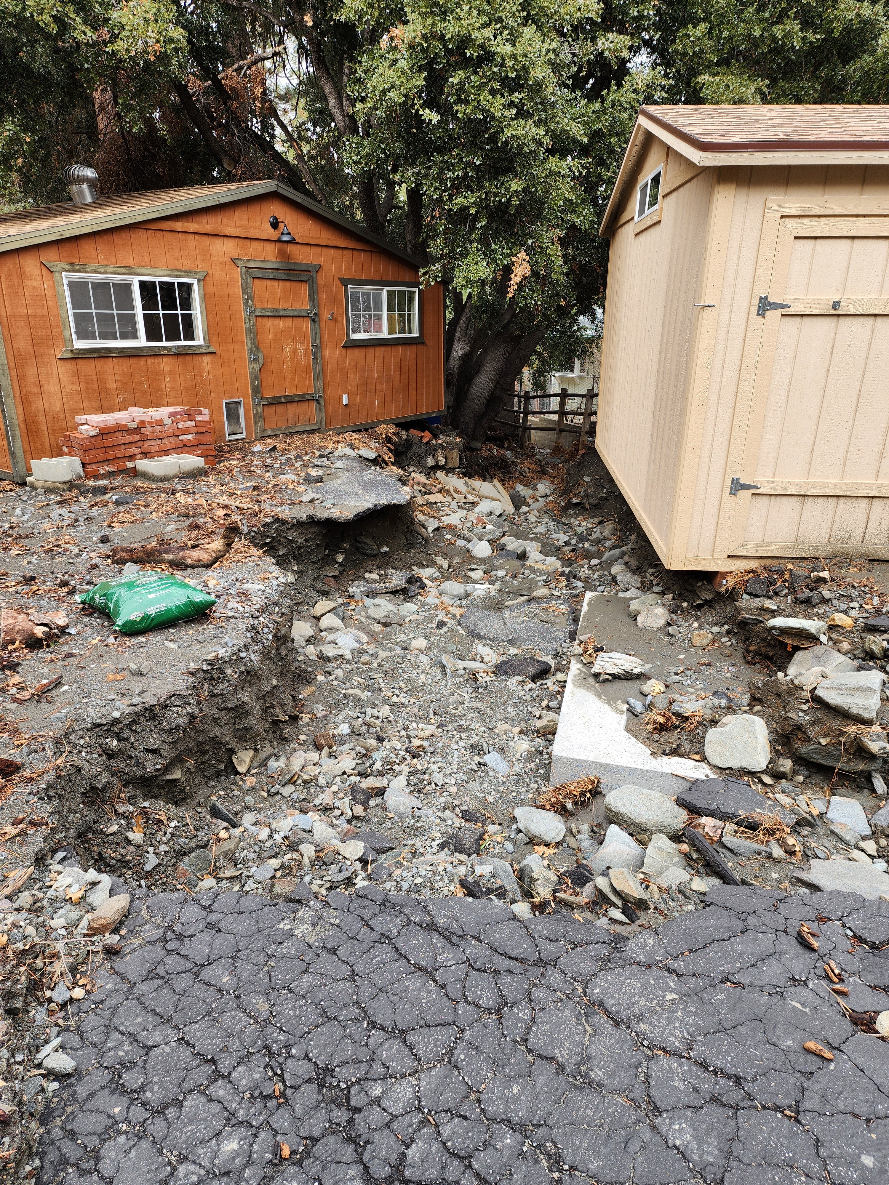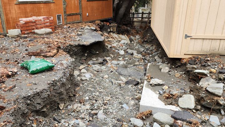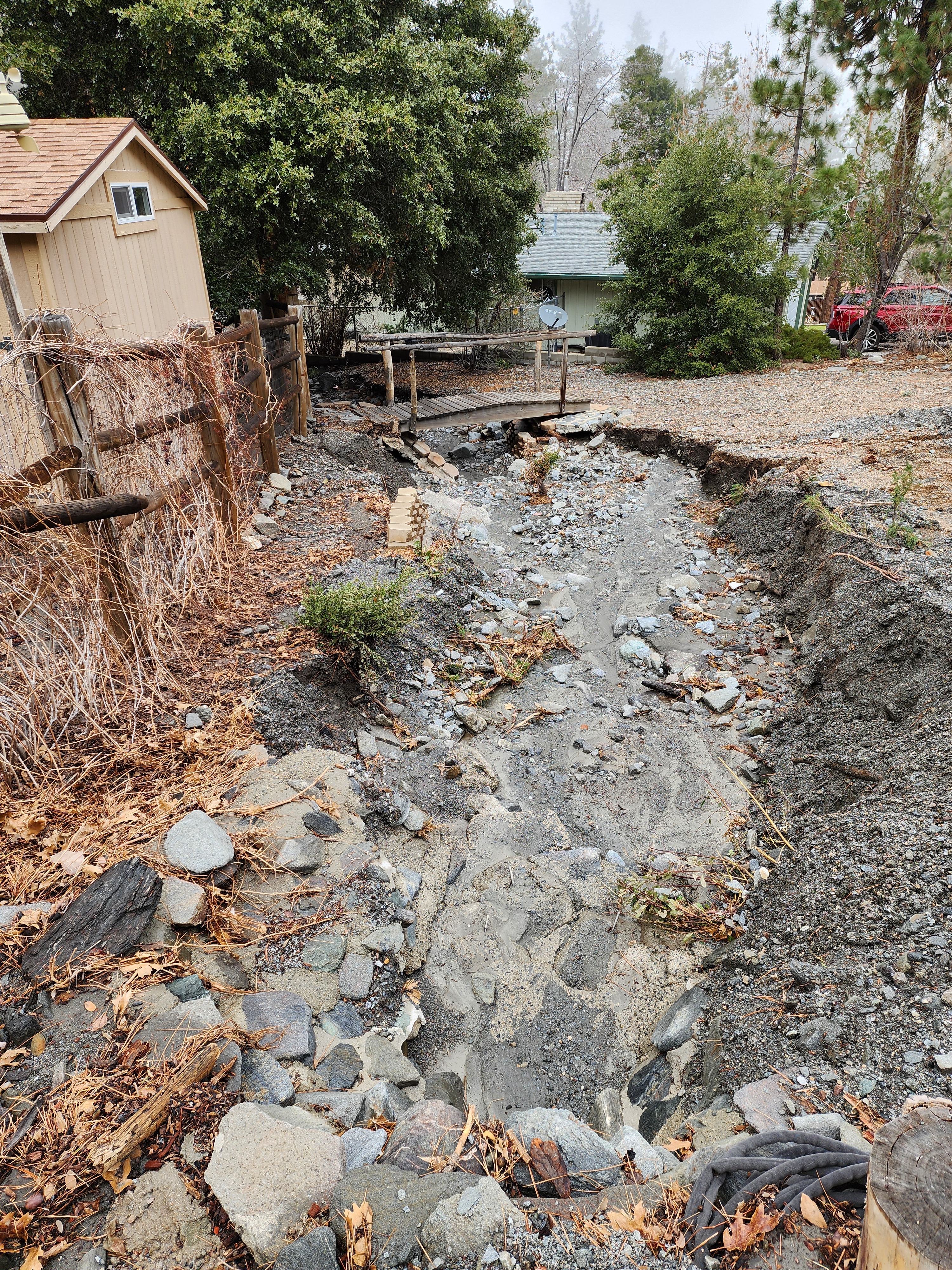 My Wrightwood home has always been my sanctuary, a place of peace and spiritual growth. But in an instant, Mother Nature turned my tranquility into a nightmare. The ground literally vanished from beneath me, leaving a 6-foot chasm where my backyard used to be. The massive flood waters didn't just ruin my landscape; it exposed my home’s vital infrastructure. My septic system—the very heart of my home's functionality—now sits precariously exposed to the elements. One more shift in the earth, one more big rain, and my home becomes uninhabitable. I am living on the edge of a catastrophe.