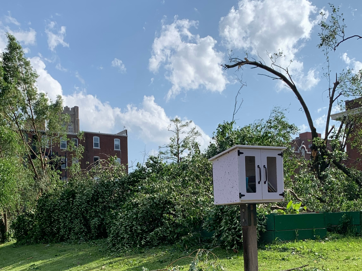 This week a tornado hit St. Louis and the Rainbow Garden was in the direct path. All of the trees were blown over and landed on top of the garden beds. I had just ordered live plants to plant in the garden. They were not planted yet as they were getting acclimated to the garden environment, and they are all gone.