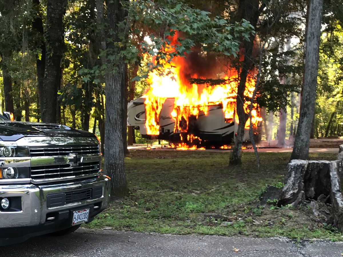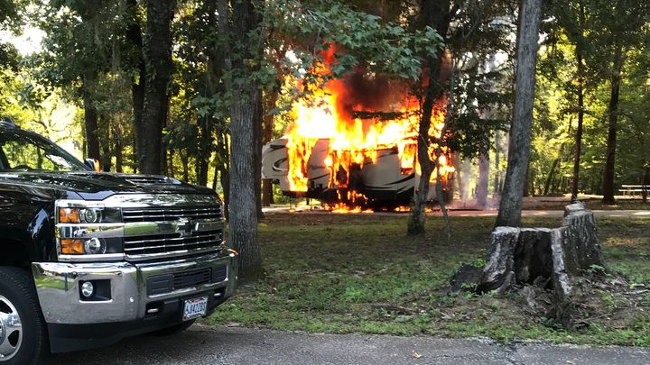 My name is Lee Kirk and my wife is Shirley, I’m a retired navy veteran. The camper was our home that we lived in at all times. We come to Selma to camp at Six Mile Creek to camp for Labor Day weekend and a catastrophic event happened and we lost everything we owned. We were coming up on our site and a power line was hanging to low and caught between our camper and the a/c unit and sparked and started a fire and we lost everything.