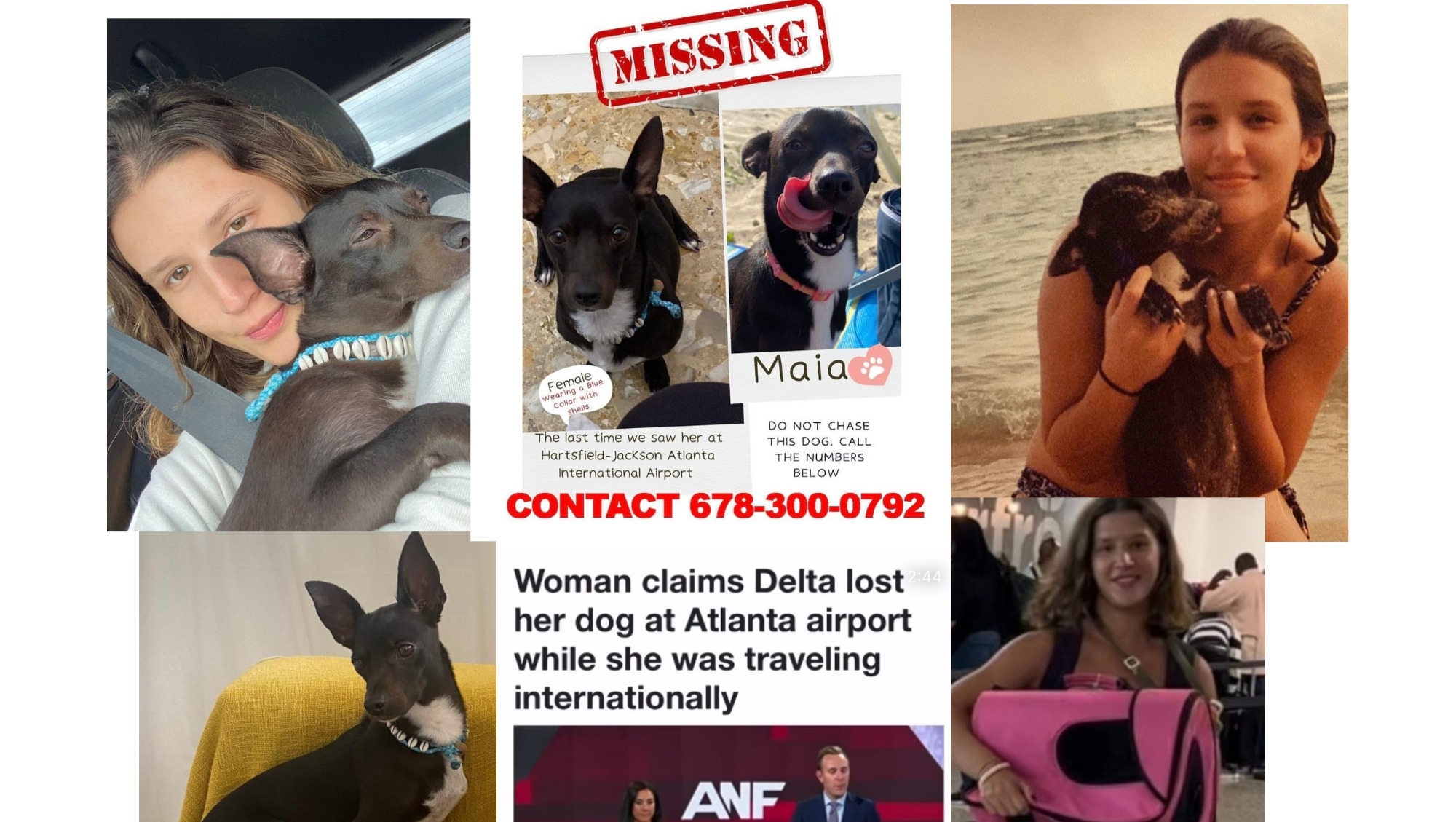 On August 18th, Delta Airlines lost my sisters dog in one of the busiest airports in the world. Maia has been by my sisters side for almost 7 years. Maia is family and she has formed and unbreakable bond with my sister Paula that goes beyond words. As you may have seen in the videos (see links below) Maia and Paula go everywhere together, which is probably why Maia so desperately broke through her kennel bag when they were separated, Maia needed to get back to Paula, especially after a very stressful travel. Maia would not have gotten lost if the Delta agent was taking “good care of her” like they said they would or if they weren’t separated in the first place.
