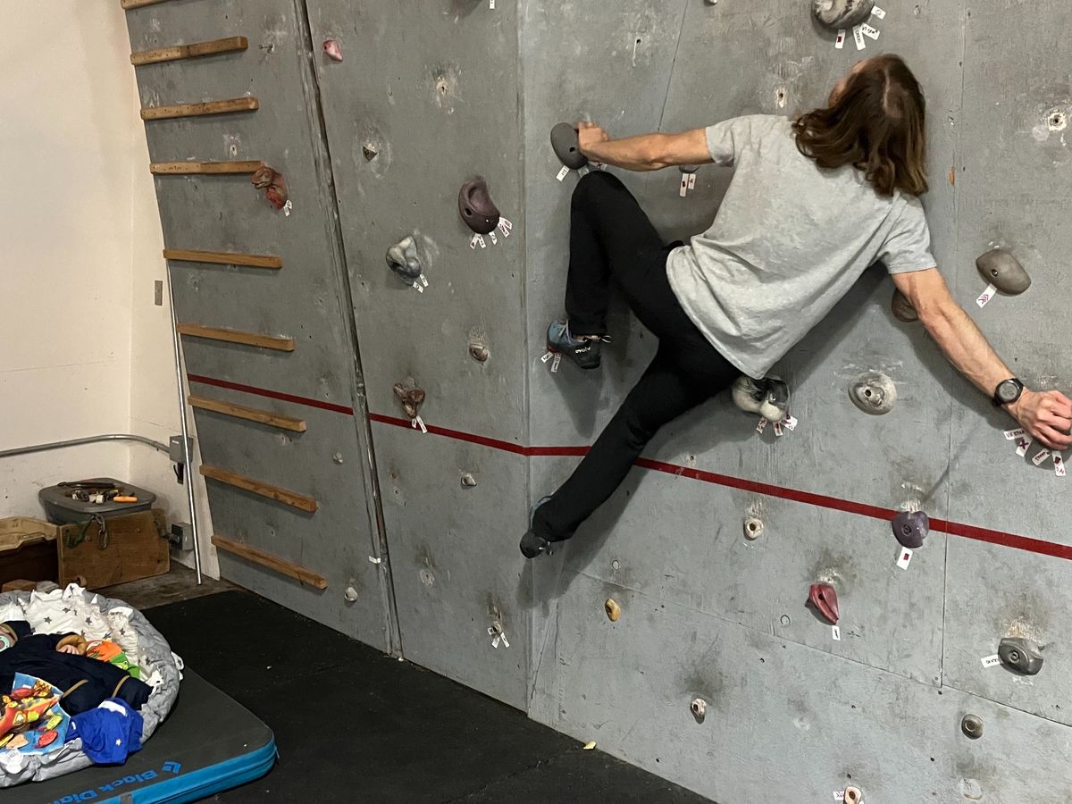 This winter, my partner Darcy and I started playing a little with what we had as we recently had a baby (as you can see in the picture), and it is hard to get off to a proper gym these days. Playing around was so much fun that we started thinking how awesome it would be to get some more climbing holds and a few crash pads to make the wall shine with the love and respect it deserves. Our vision is to make it a community space for staff at the PNW campus, for instructors coming through and for our students - something that has fun routes for climbers of all abilities and bodies. And is safe for all users! We hope to get a weekly Tuesday Night Bouldering party that is welcome to anybody in the area. And, we want to start a regular route setting schedule to keep it fun and fresh.