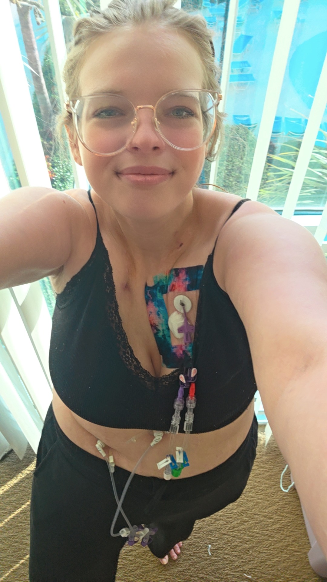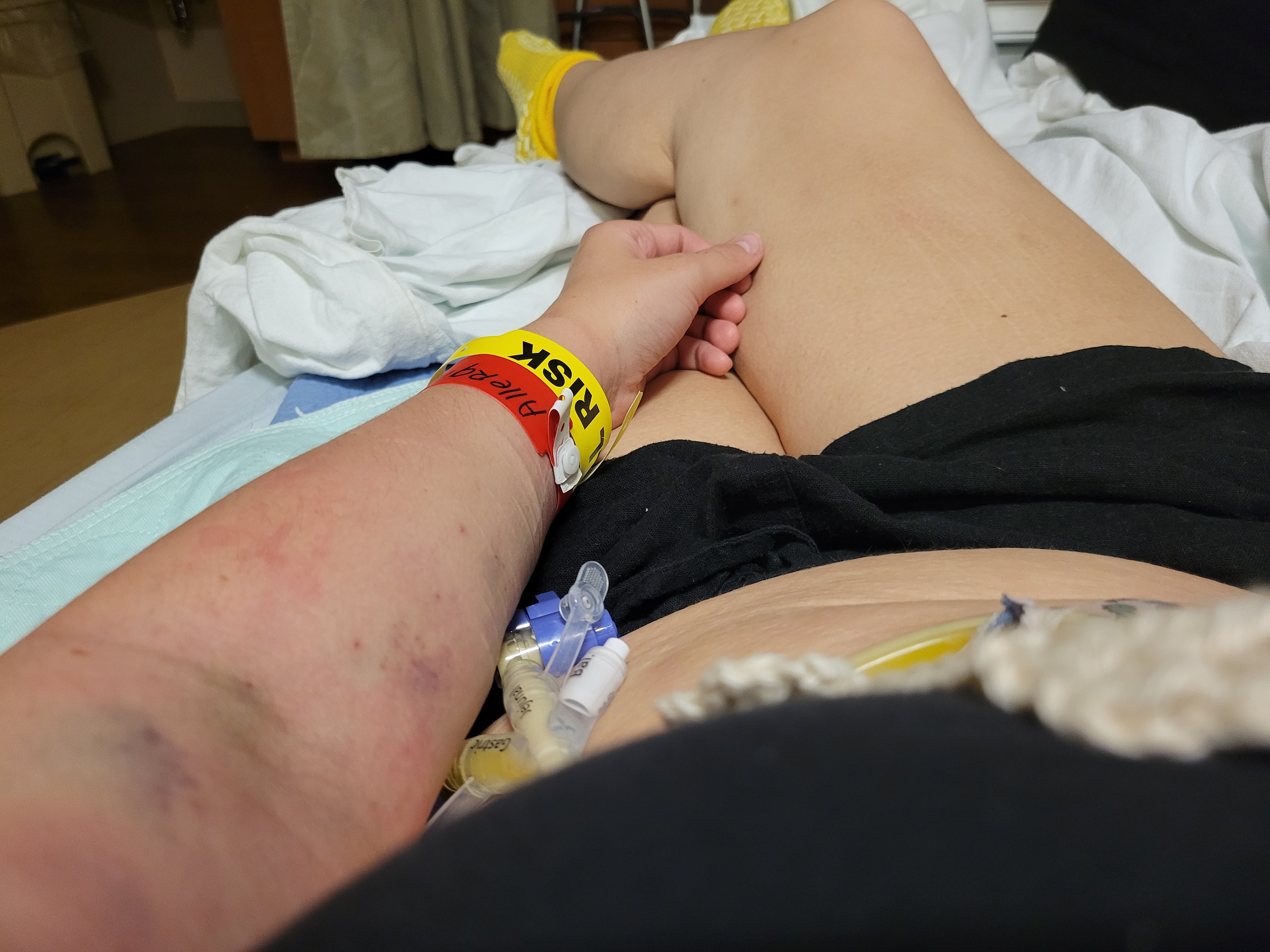 She lives with Eosinophilic Esophagitis (EoE) and Eosinophilic Gastrointestinal Disorders, severe gastroparesis, Postural Orthostatic Tachycardia Syndrome (POTS), Inappropriate Sinus Tachycardia (IST), convulsive syncope, as well as severe unmanaged allergic reactions post-Covid. Now she uses multiple mobility aids and is often stuck in bed after any physical exertion. She takes about 25 medications everyday as well as IV fluids and tube feeds. Her condition has worsened since January 2024. Since January 2025, she has been admitted to the hospital 26 times and visited the emergency room 10 additional times.