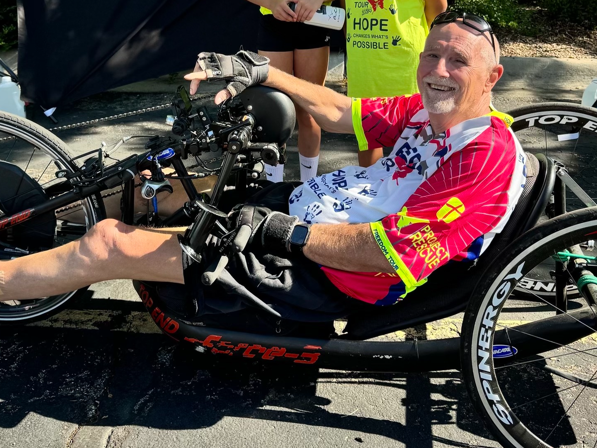Dear Friends, Rich Dixon and his wife Becky are not only avid cyclists in our community, but are people making a huge difference for others through the cycling they do. This impact has been going on for quite some time now. Rich, paralyzed below his chest and confined to a wheelchair since 1987 from a spinal cord injury, knows adversity and the faithfulness of God who works for our good in all circumstances. Starting back in 2011, Rich, using a hand powered bicycle, rode over 1,500 miles along the entire length of the Mississippi River and gained vision for their ministry that we all love and call today - the “Freedom Tour.” The Freedom Tour has raised well over $1M for a Project Rescue “Home of Hope” in Southeast Asia that provides care for children who have come out of the red-light district brothels and human trafficking crisis.