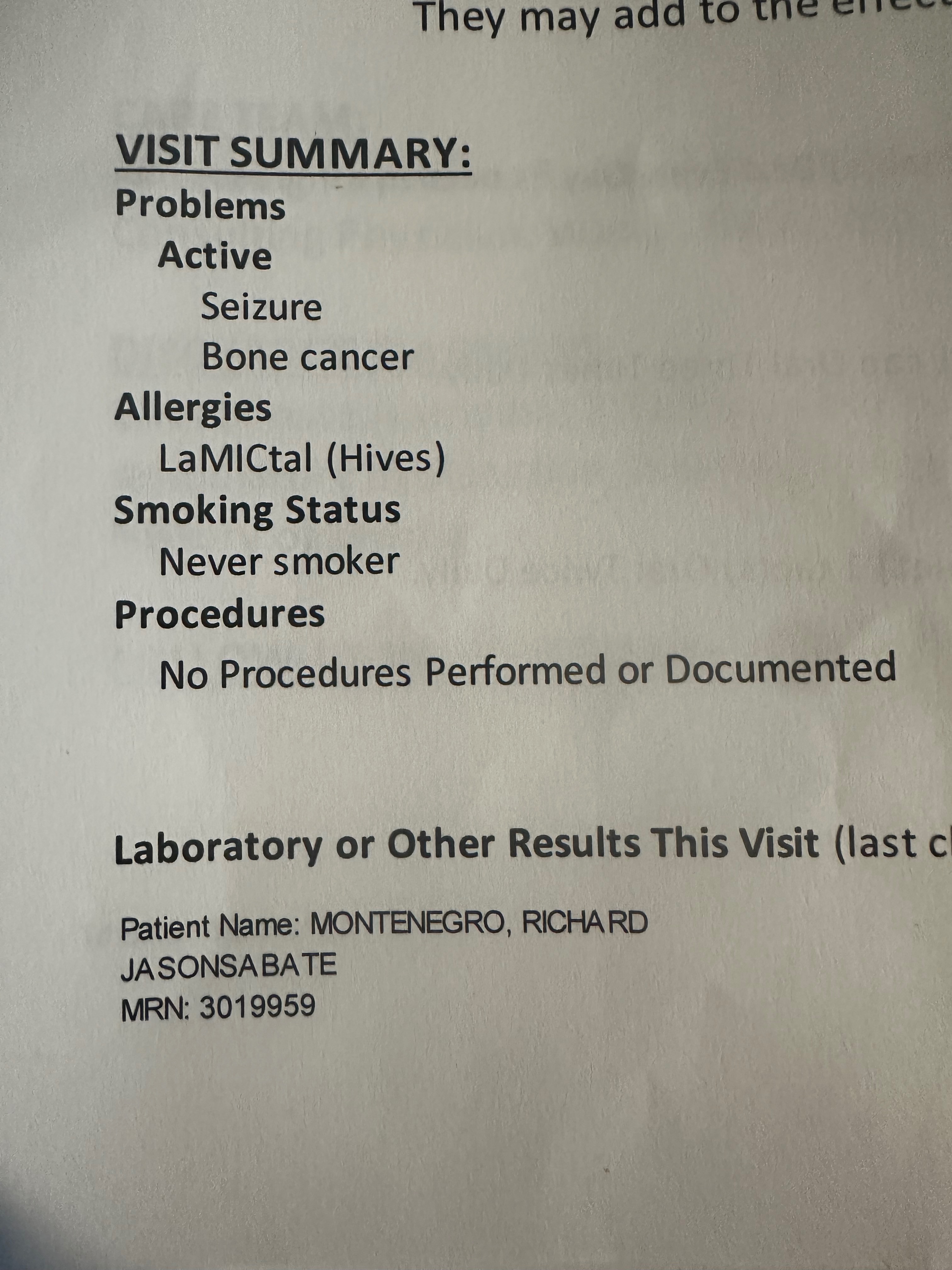 I'm currently dealing with several medical conditions that include epilepsy, bone cancer, pneumonia in my lungs, and being extremely anemic.
