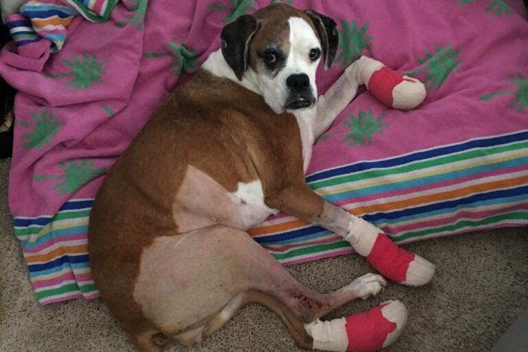 Anyone that knows Audra and Ian, knows and loves their boxer Riley as well. Last week what was thought to be just a sore leg has turned into a true nightmare. Audra and Ian took Riley to the vet to have her leg looked at for what was thought to be a minor injury when she was then admitted to the UF emergency vet hospital for what would end up being a week long stay and possible leg amputation, along with many other complications.