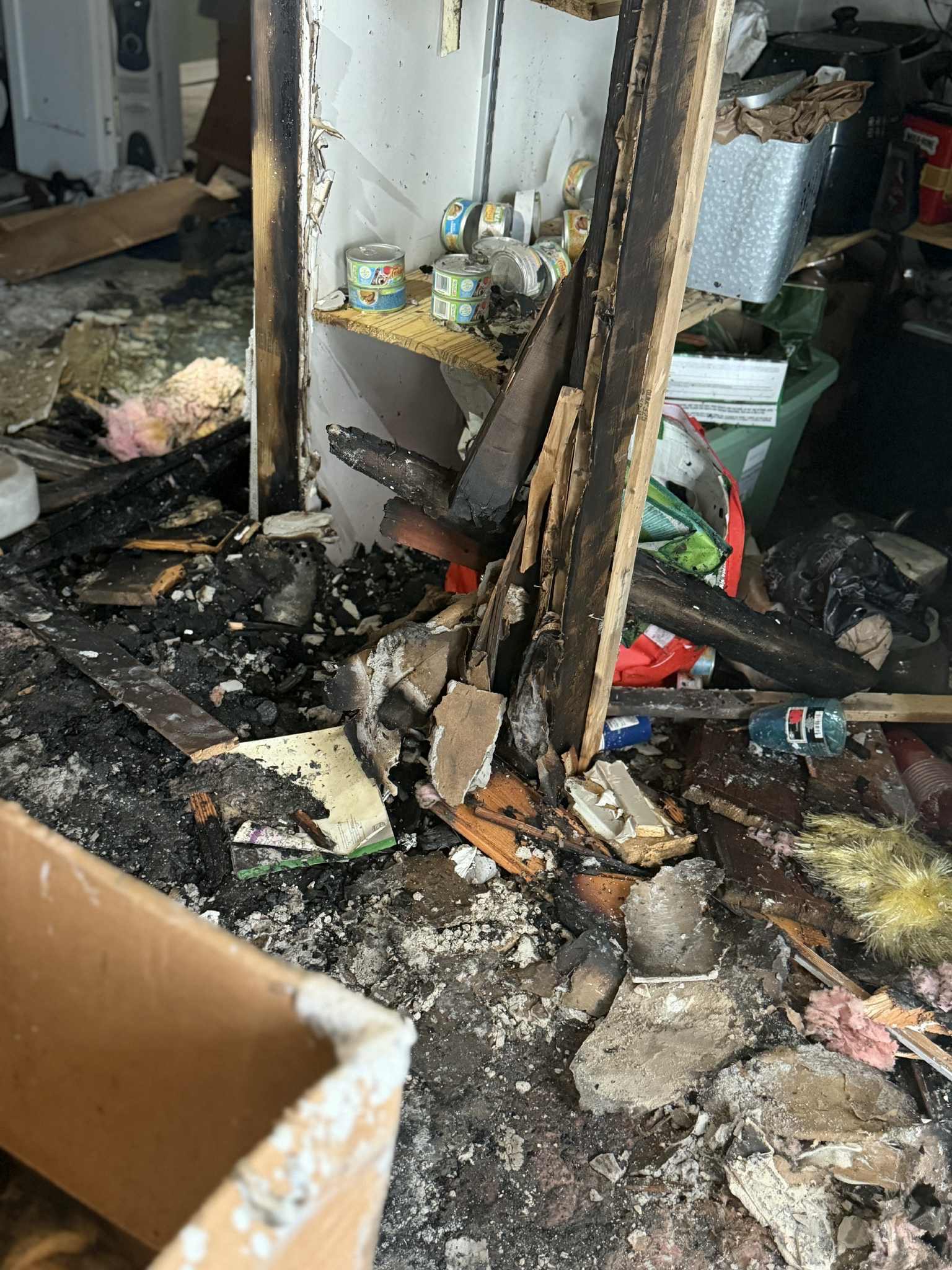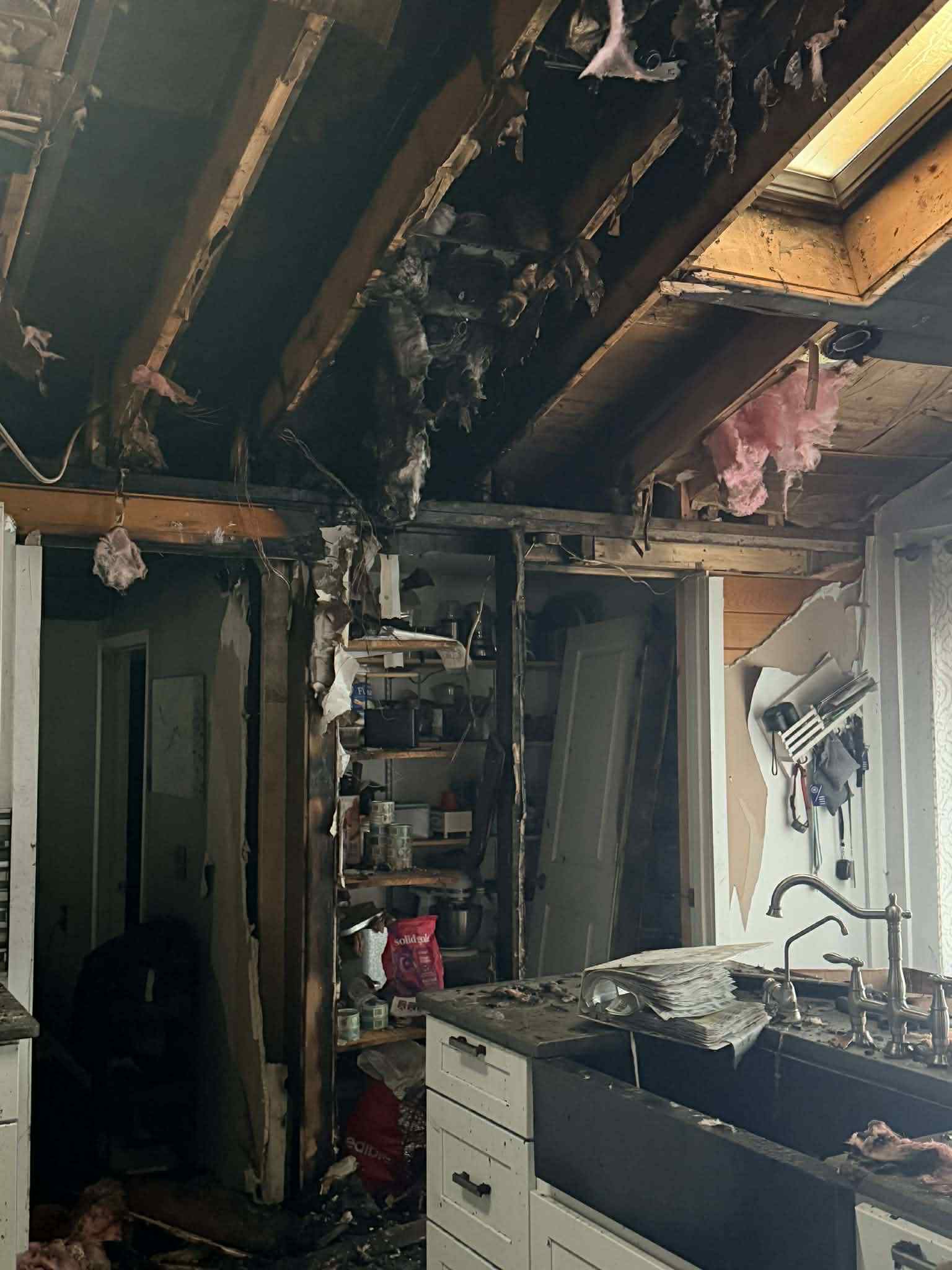 The fire department arrived in under five minutes but despite their quick response the damage was catastrophic. When Rob and Tricia returned they found their house destroyed their belongings memories and sense of safety gone in an instant. Smoke and structural damage caused by an electrical fire inside the wall mean they will not be able to return home for nearly a year.