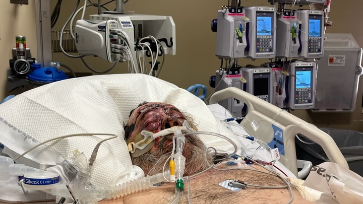 On June 20th, 2025 at 4:30 PM, Bob was riding his motorcycle to a NAM KNIGHTS of America meeting in Copper Hill, TN to represent the Roosevelt Riders Chapter. Bob is the Vice President of the Chapter and was riding with Chapter President Mike (Token) Coles. The 78-year-old Vietnam Veteran was struck from behind by a pick-up truck causing severe catastrophic injuries. The truck ran over the top of Bob, pinning him underneath the pickup. He remained pinned for over 30 minutes while awaiting emergency services. Another Nam Knights brother Travis (Rodeo) of the Appalachian Mountain Chapter came to the scene and crawled under the truck to be with Bob for comfort and support. Ultimately, Bob was life flighted from the scene to a Chattanooga Hospital, where he will remain for the next 5-6 weeks. His injuries include a broken leg and ankle below his artificial knee, broken femur on the other leg, broken pelvis, numerous broken ribs, both hands completely de-gloved, and one arm almost completely severed at elbow. Thankfully, Bob had a high quality helmet on. The impact to the helmet caused it to be pushed down with such force that it ripped open his forehead and displaced and broke his nose. Bob also suffered internal organ damage, the extent not fully known. It truly is a miracle that Bob survived the accident.