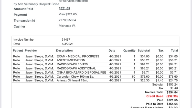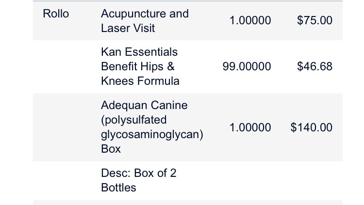 It all started back in April (above are examples of a couple of the many invoices we’ve accrued thus far. The first is his original X-rays and the 2nd is what we pay, on average, every week), actually there were warning signs before then, but I thought it was going to get better.