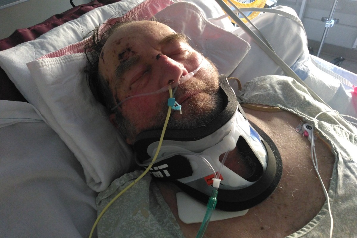 On the evening of May 6th, 2021 Ron took a serious fall down some stairs. He fell forward and hit his head on the concrete causing his neck to snap backwards. This caused the disks in his neck to dislocate and almost sever his spinal cord and leaving his upper spine unstable. The paramedics were able to stabilize his neck with a collar and transport him to Aspirus Wausau Hospital. Upon arrival at the hospital they did an CAT scan and MRI to check for bleeding in the brain, both came back normal. Up to this point Ron was fairly stable, he was in a lot of pain and his face was swollen & bruised from hitting the concrete, but he was coherent and able to speak. Now their main concern was his neck injury, he still had movement, but his sense of feeling was diminished due to spinal bruising. On May 7th, at around 11pm, we received a call from the hospital that Ron was un-responsive and they feared that he had a stroke. Due to the extent of his injuries they could no longer help him here in Wausau and he was transported to the UW Madison Health Care Center by helicopter and they confirmed that he had a stroke. When he fell several blood vessels in the neck were broken and as the blood pooled clots were formed, and one broke away and travelled to his brain. The doctors at Madison gave him clot busting drugs, unfortunately these didn’t work and they had to remove the clot manually, through a vein in his groin. By the time the clot was removed almost 48 hours had passed, and we all know the longer the clot is there the more damage is done to the brain. The next day after the clot was removed he still remained mostly un-responsive, responding only to painful stimuli. On the 2nd day he began to wake up very slowly, and only for short periods, and his recovery has been up and down since then. He developed pneumonia, which was caught early and treated. One week later, on May 14th, the doctors determined that he was stable enough to be transported back to Aspirus Wausau Hospital.