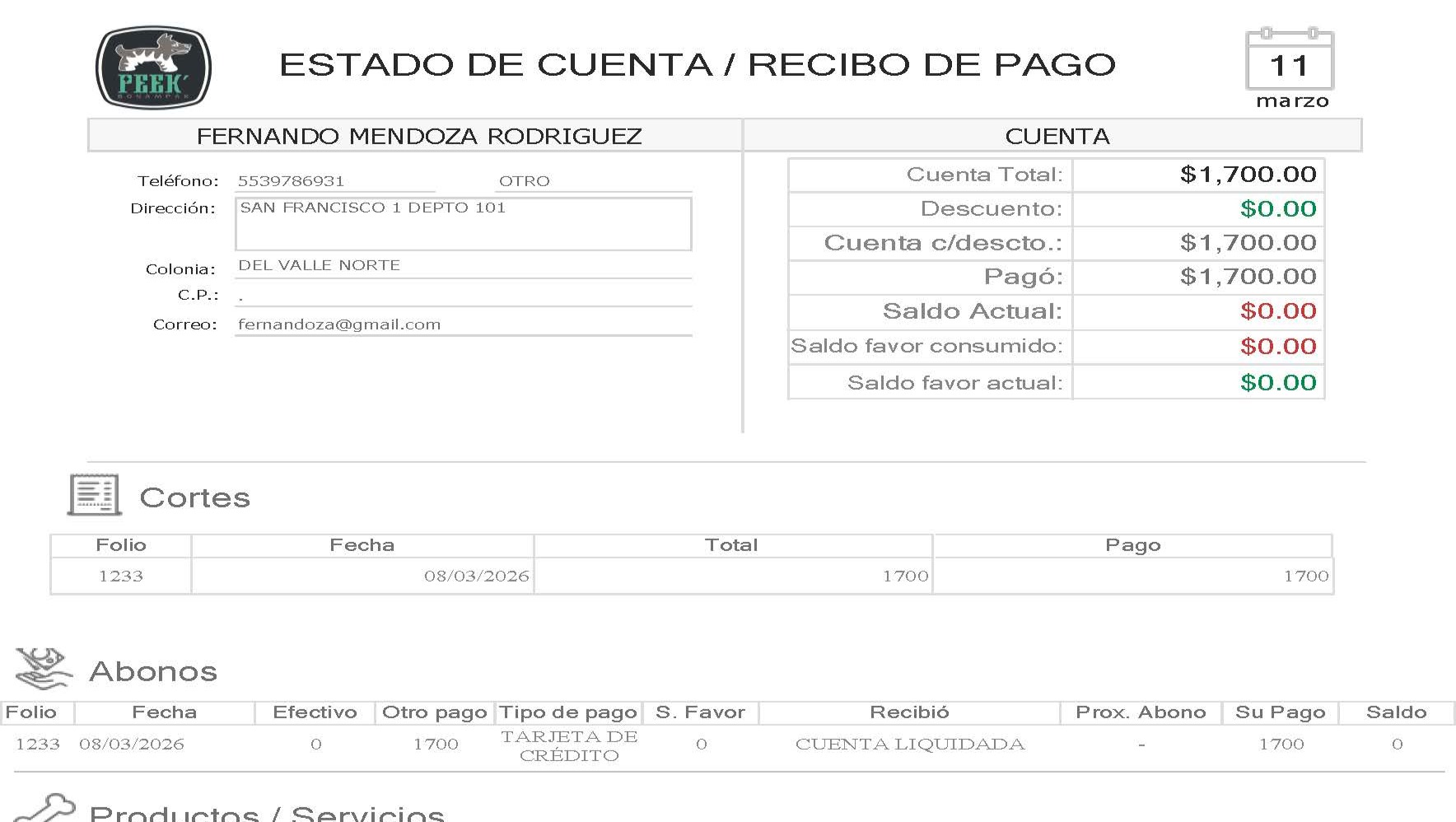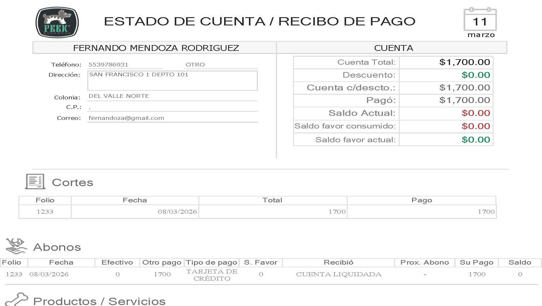 • Hemograma / Bioquímica (Bloodwork - Completed March 6): $1,700 MXN