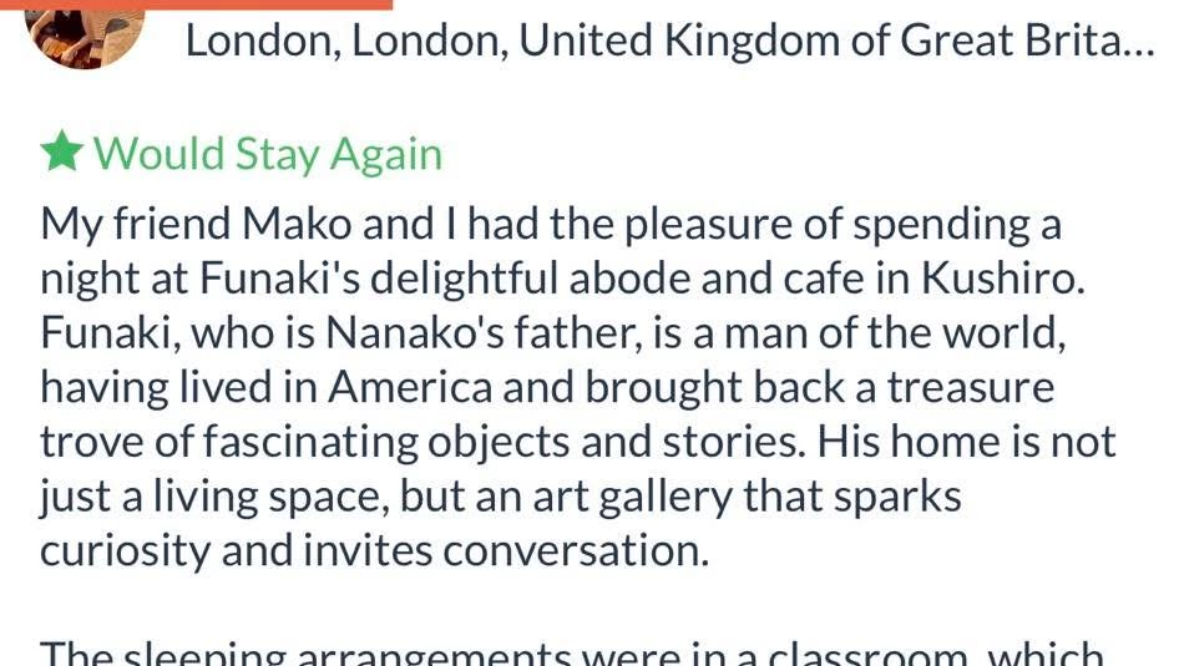 Although Kushiro is a quiet, rural town, we have been surprised to receive requests from two to three travelers every week.