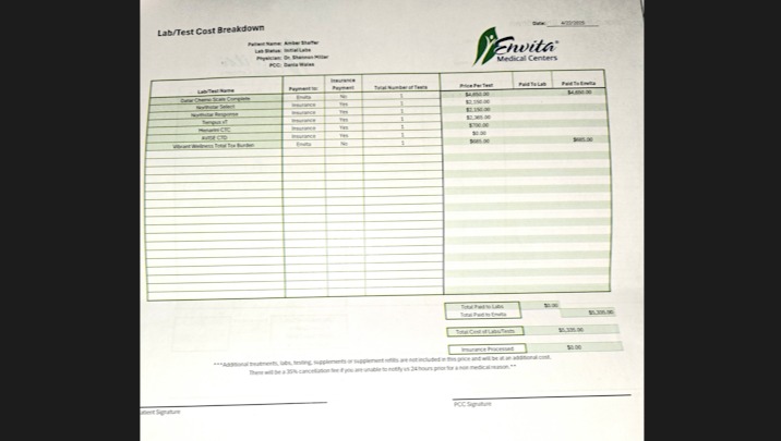 (We don't have this cost sheet for the vaccine. This part of the treatment will be done by another clinic in Mexico who has partnered with Envita .)
