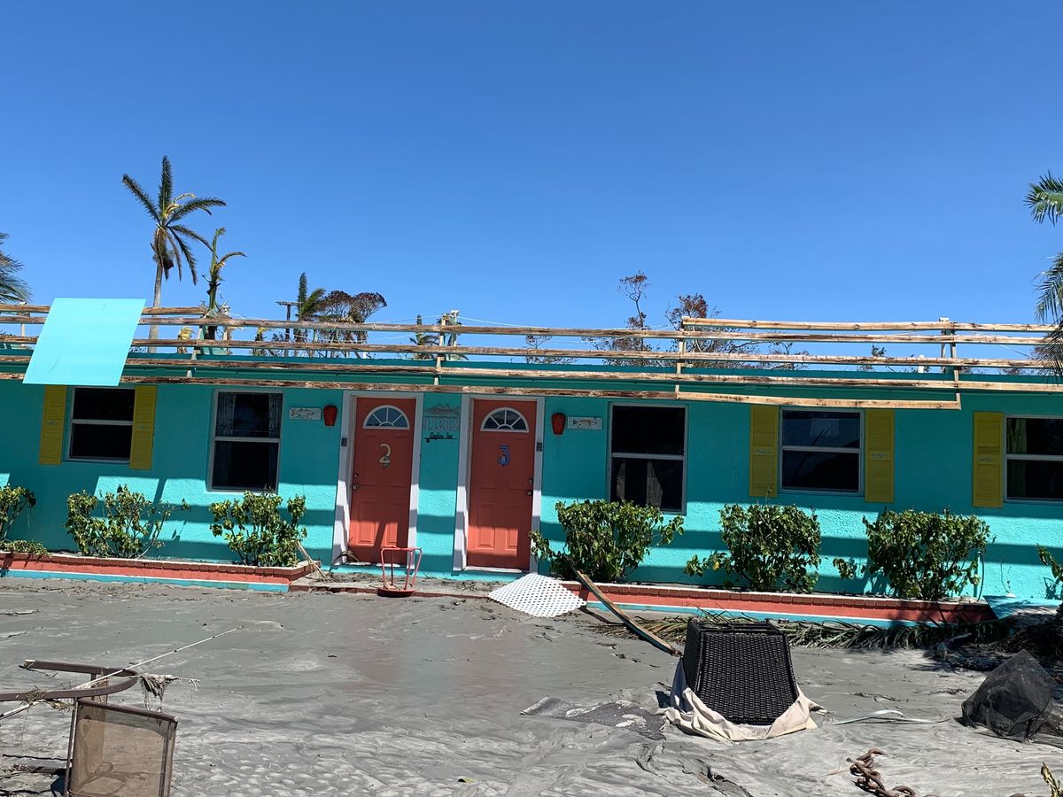 My mother-in-law, Janette Fraissinet, owns and operates Angler’s Inn Motel on Matlacha Ave. Her home was right next to the motel. Both buildings had 4 feet or more of water intrusion, the doors were blown out by the force of breaking waves coming in from Pine Island Sound. The entire property, including the interior, is covered in ankle deep muck. All contents are destroyed. Worst of all, Janette along with all the residents of the Island are homeless. She will be living with us temporarily, but she needs to be closer to Matlacha in order repair and rebuild.
