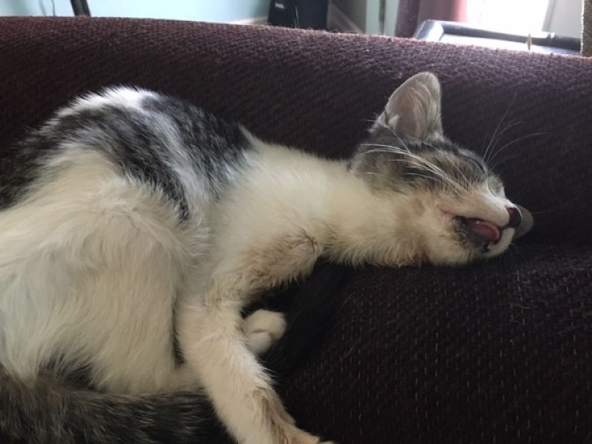 She adopted me a month ago after I loudly meowed “take me!!” when she walked in the shelter. She then found out I had head trauma (hit by a car breaking my jaw, bitten on the head by large animal, major infection, lotsa pain… and I’m only 2 months old!) The shelter loved me enough to care for me, took out 2 bottom teeth, cleared up my infection and put me in the room for Annie to find me.