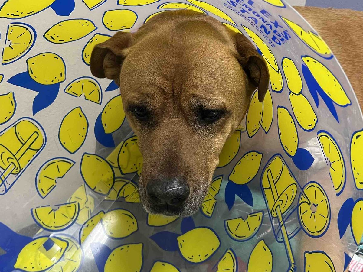 Visited with Bubba today. He was a little grumpy. This is day 9 being in the hospital. He’s not happy having to wear the cone of shame.