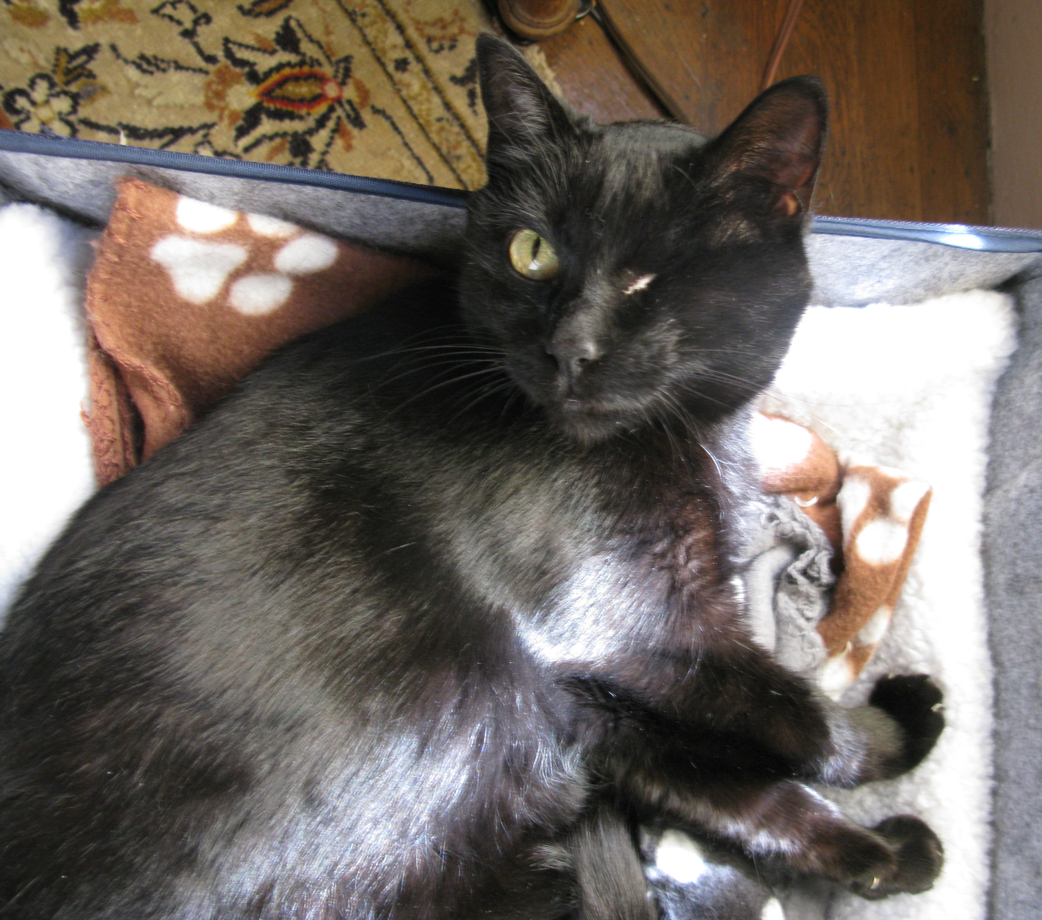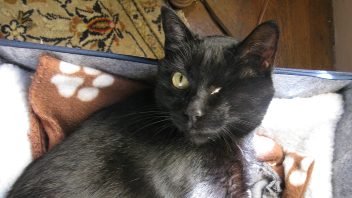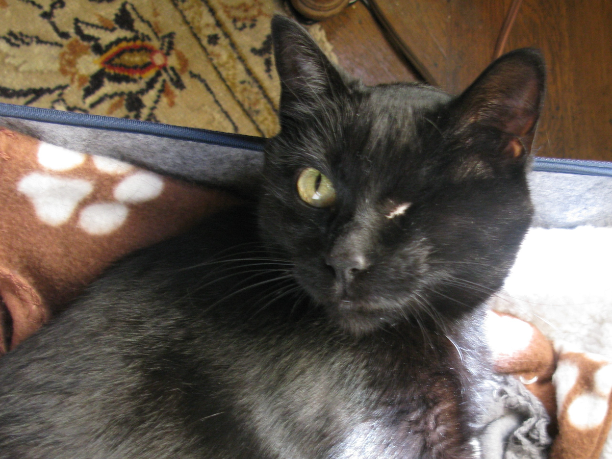 Coco, my one-eyed kitteh, has always been a survivor. I found her five years ago in the mountains of the Gold Country after her previous owner abandoned her. Despite her rough start, Coco has the sweetest disposition and loves nothing more than sitting in my lap, especially in the sunbeams. I promised her she would never go hungry or be at the mercy of wild animals again.