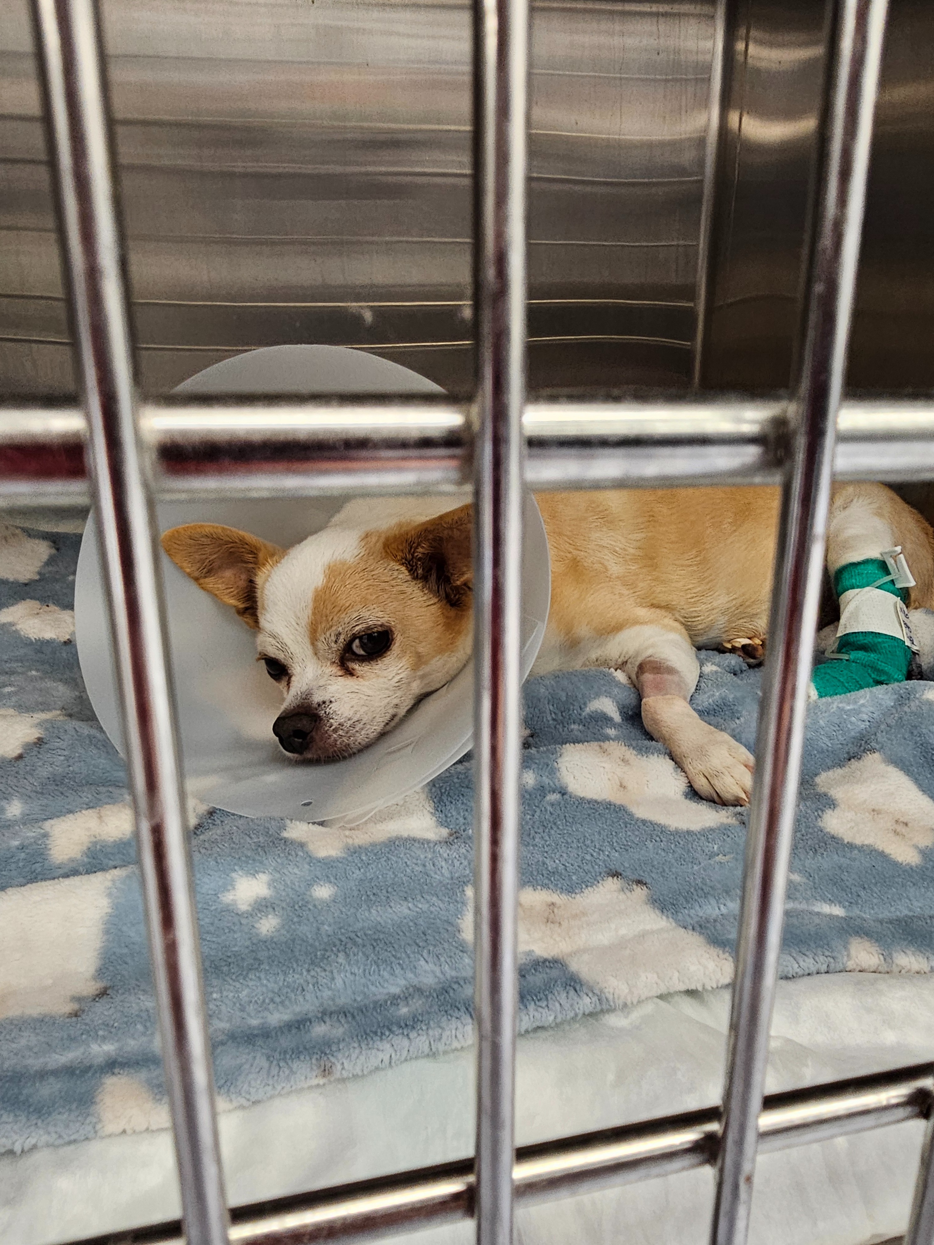 The veterinary team calls him a “trooper” because he never complains — he just looks up at us with tired eyes and keeps fighting.