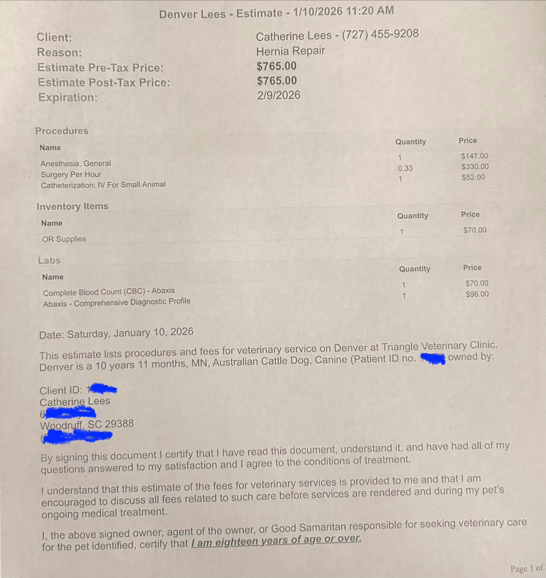 Recently, Denver was diagnosed with a hernia in his groin area. The vet explained that if it grows, it could cut off blood flow to his organs—a life-threatening situation. The only way to save him is through surgery. As someone who has just finished two years of chemotherapy for breast cancer and is now cancer free, I know how precious life is. However, the cost of my own treatment and related surgeries has left me with thousands of dollars in medical debt, making it impossible to cover Denver’s surgery on my own.