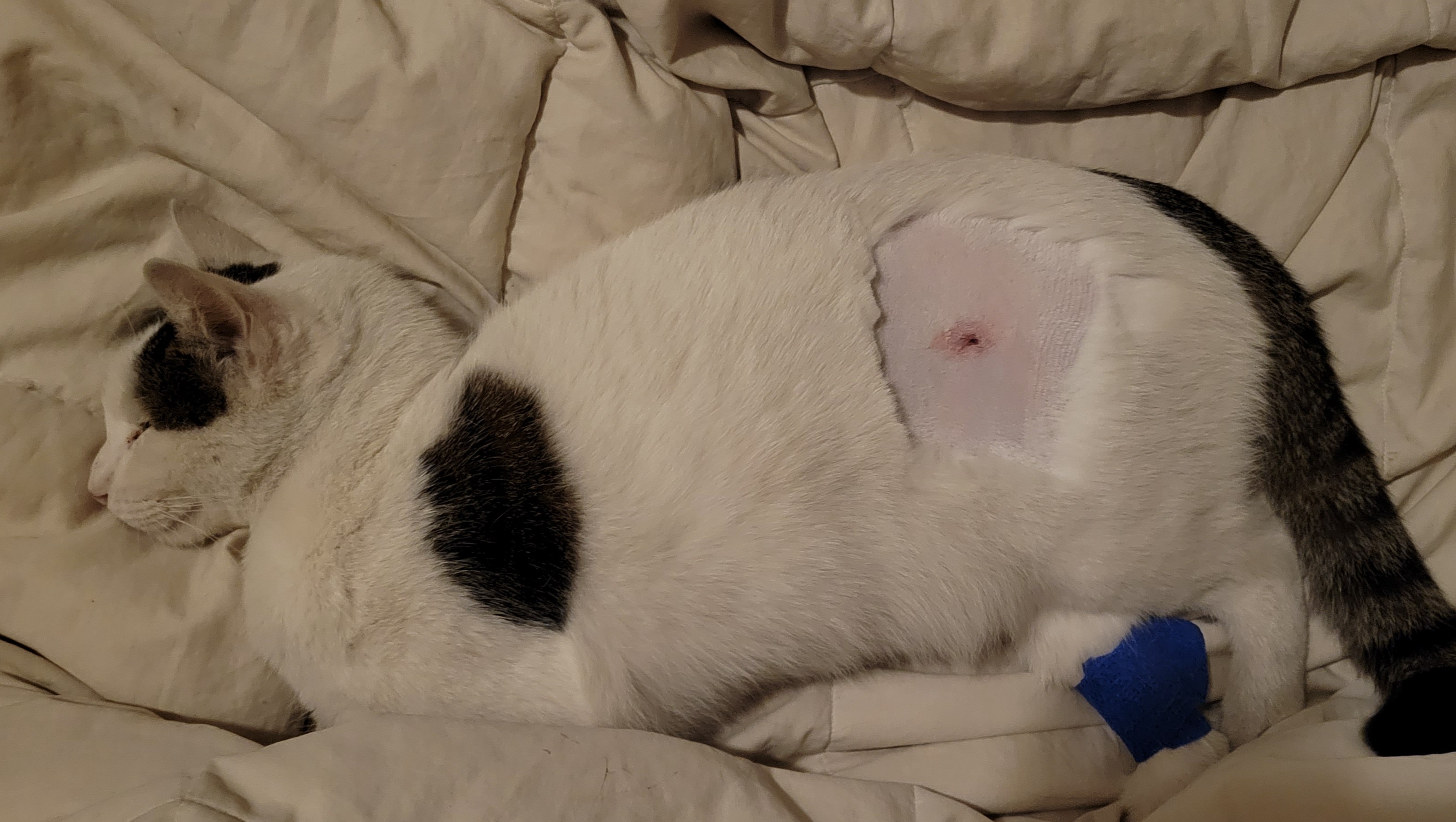 I'm Daniel, my wife's name is Care. Last night, 11/05/2022 sometime while our 5 yr old cat, Domino, was outside, someone in our neighborhood SHOT him above his left rear leg. The bullet shattered his left femur and broke into many tiny pieces in his leg. Our options are to either do reconstructive surgery which would cost a ballpark of $10,000. Or, to amputate his leg would cost just under $5,000.