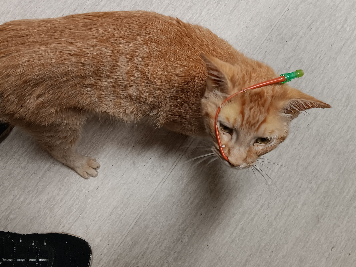 One of our rescue cats, Fergie, fell ill about a week ago. He has been to urgent care two days in a row, which has left us with a bill of $1500, but they couldn't figure out what's wrong with him. He then still had a fever of 106.7, which is dangerous in cats and people. At that time, I noticed he was jaundiced, so I rushed him to his primary vet to be hospitalized. He has been there a week, where a feeding tube and IV were placed. His fever panel came back negative for everything they tested for, so we still don't know what's happening with him.