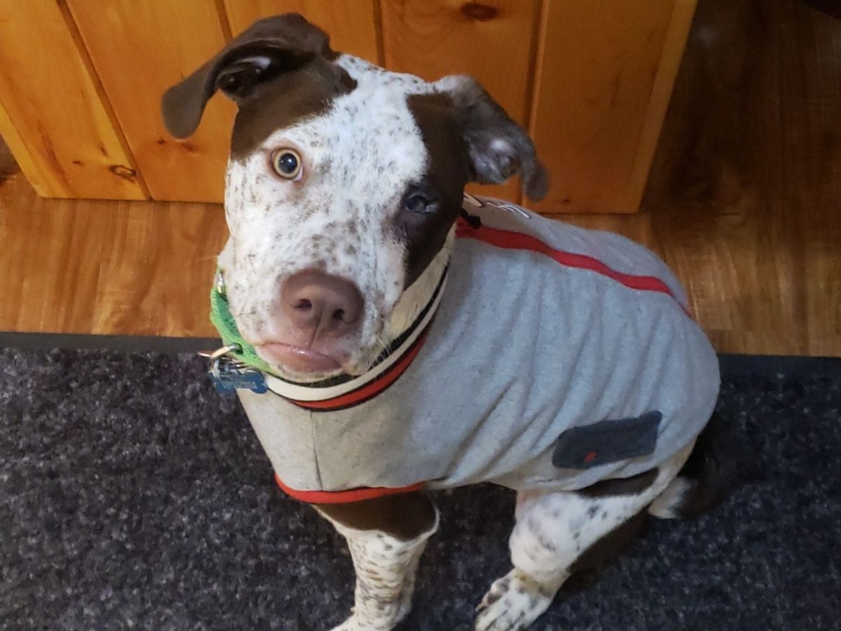 We adopted our puppy Finn from a shelter in May of last year. When we got him his eye was totally swollen shut, the lady that ran the shelter said he had just needed some eye drops and it would clear up, however after 2 months of drops, his eye wasn't getting any better. She said that it was probably just a genetic problem with his eye lid and not to worry. The lady at the shelter was extremely hard to get a hold of. I called and texted her for weeks trying to get ahold of her so she could have her vet look at his eye. It was close to a month before I decided to bring him to my own vet to take a look at him. My vet said that he had a severe eye infection and was swollen for so long that the eye lip rolled on into itself, causing a lot of corneal damage. We had to go see a specialist for his eye in Portland. They said they could save his eye with an eyelid surgery, however its a very expensive procedure, and we are unable to pay for it all. If his eye is left like this he will end up loosing it. Please help Finn!