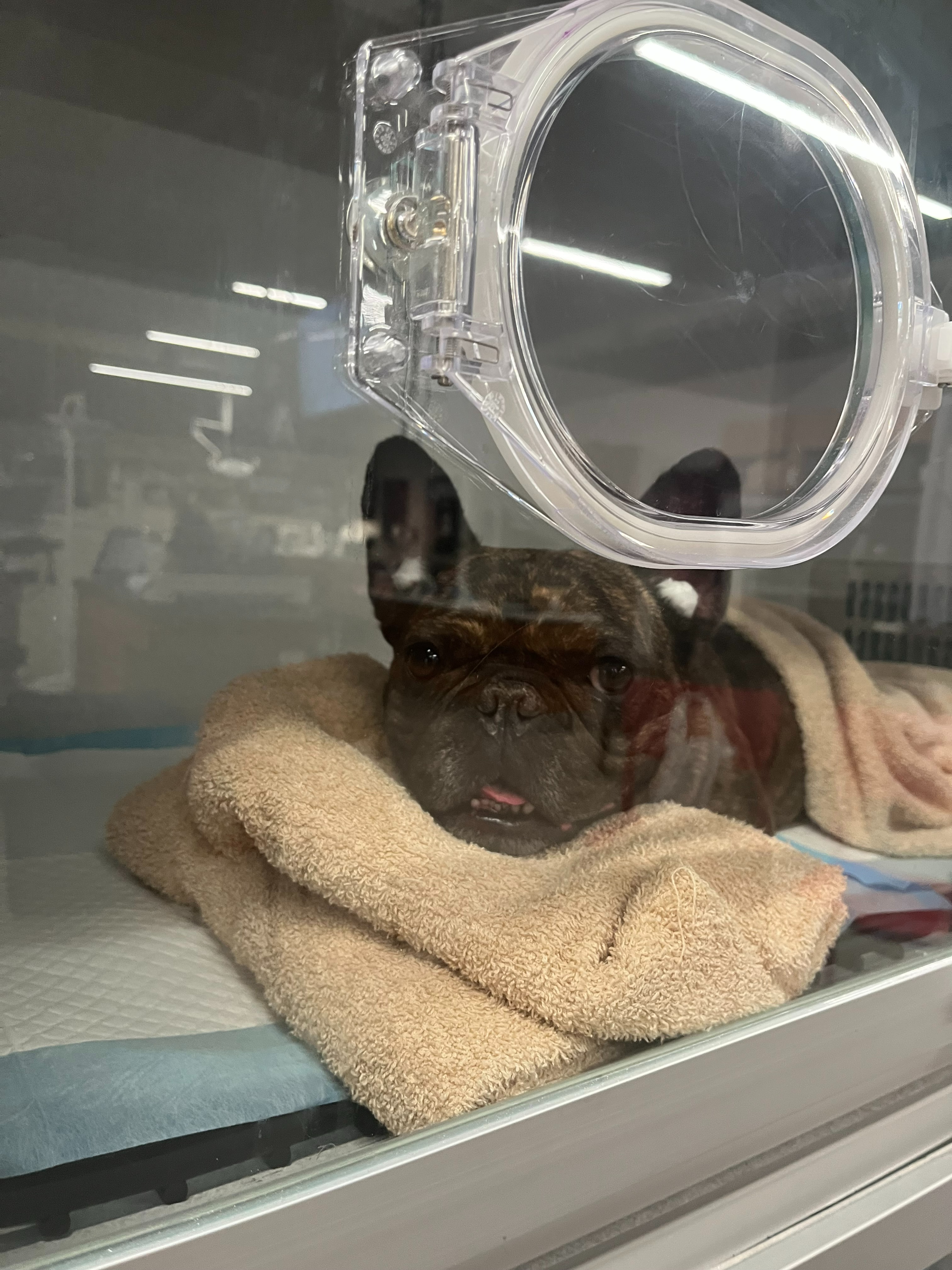 My sweet French Bulldog, Frankie, suffered a severe heat stroke yesterday and is currently fighting for her life in the hospital.