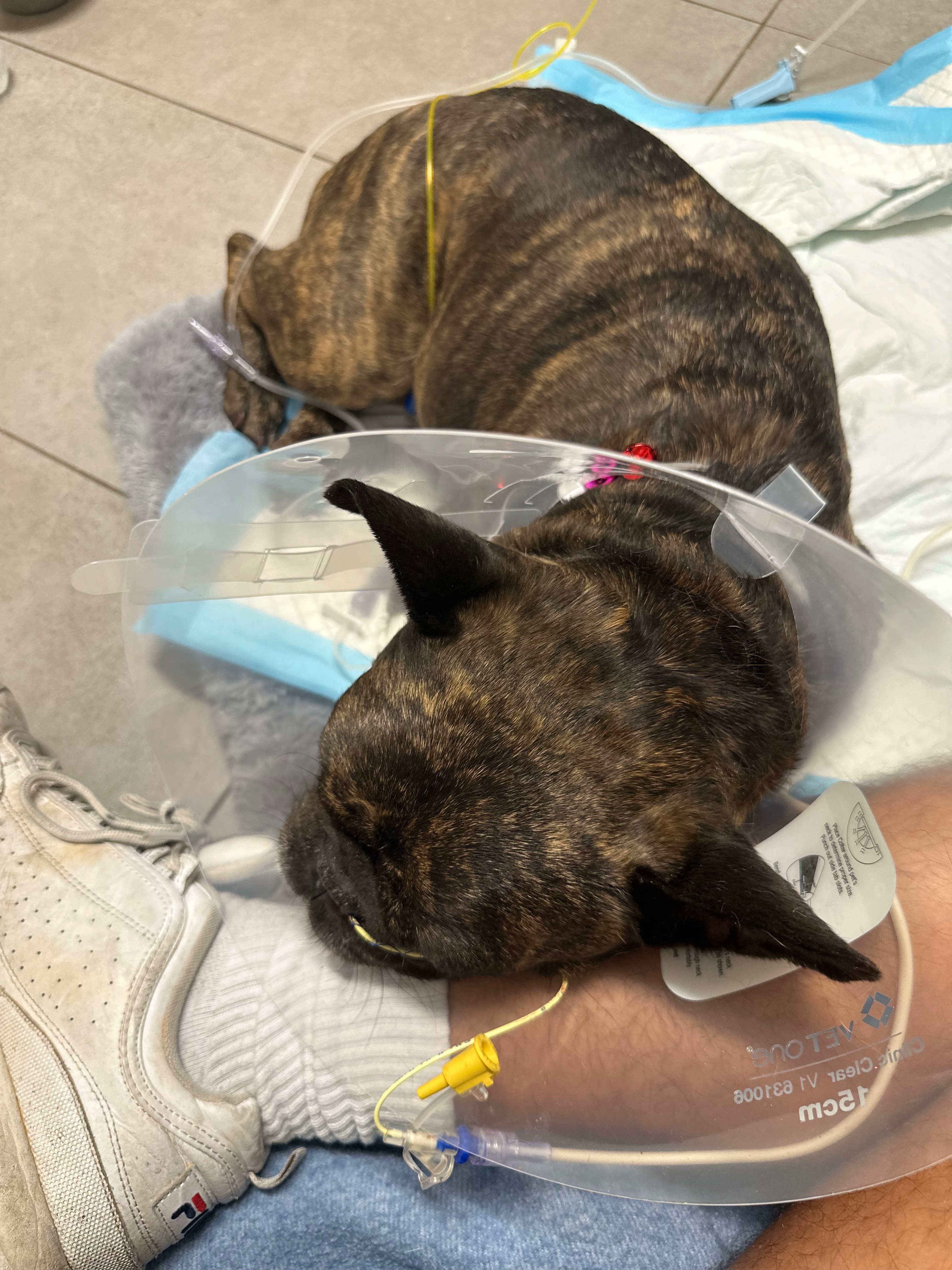 It all happened so fast — one moment she was just her usual happy self, and the next, she was unresponsive. We rushed her to the emergency vet, where they confirmed she was experiencing a heat stroke had a seizure and isn’t clotting properly. She received a plasma transfusion and urgent care to stabilize her, but she still isn’t in the clear.