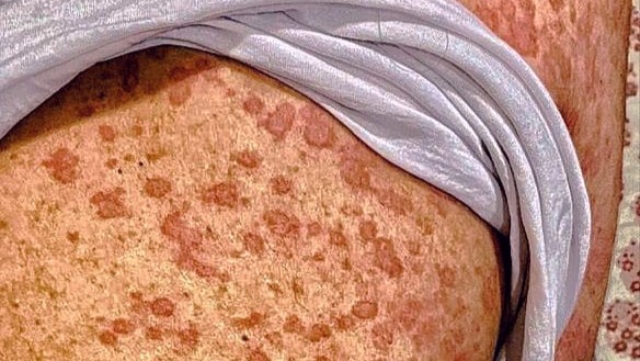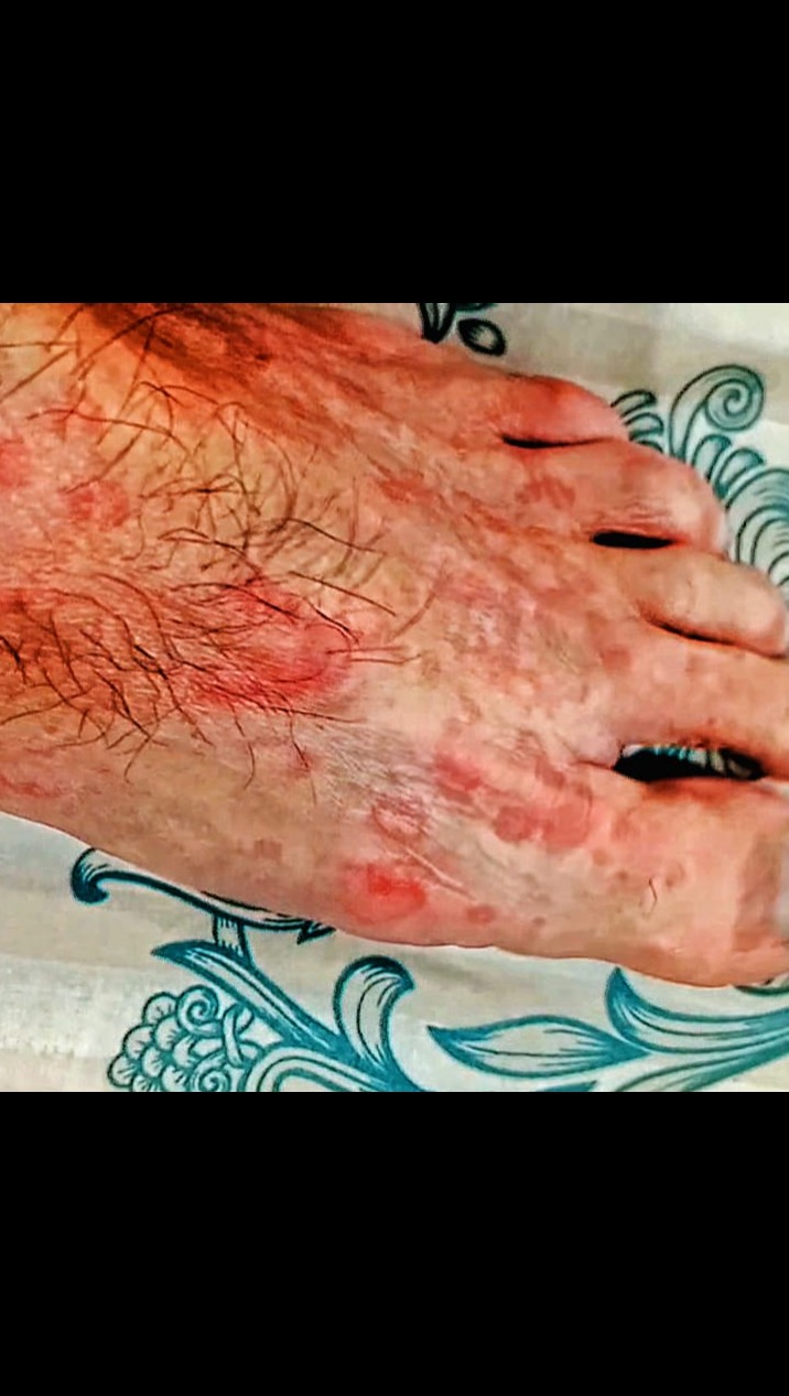 Mr. Qadeer first presented with a generalized rash that quickly spread from his extremities to his trunk, accompanied by a burning sensation and alarming symptoms such as a sinking heart and dangerously low blood pressure. Despite initial treatment for an allergic reaction, his symptoms only worsened over the following days.