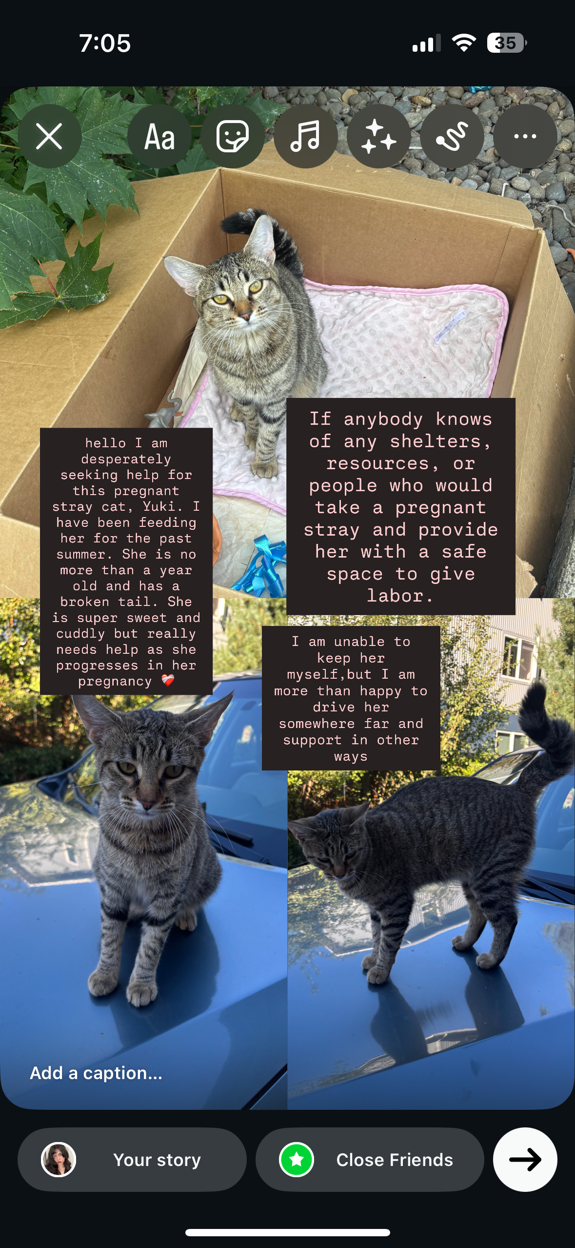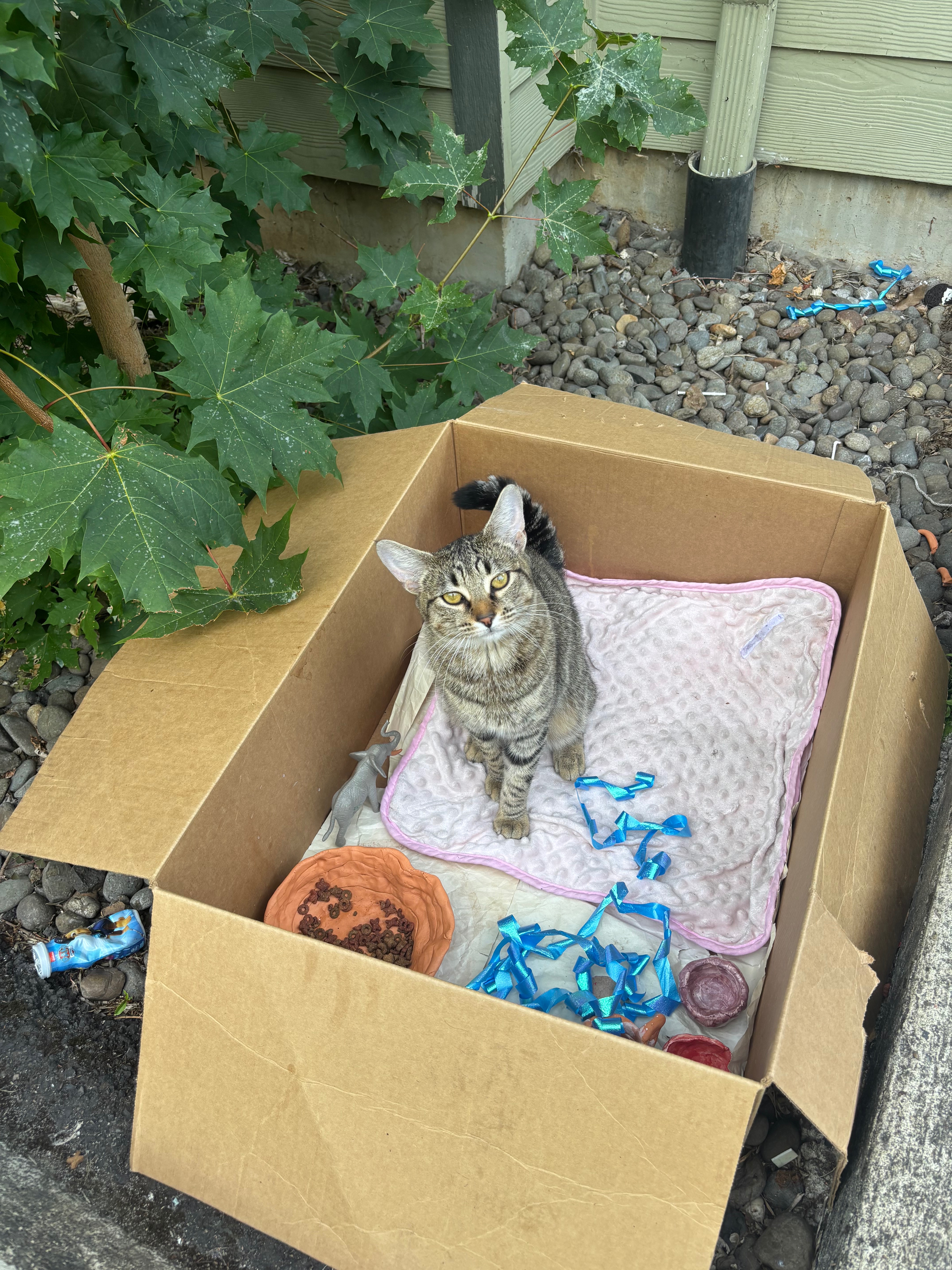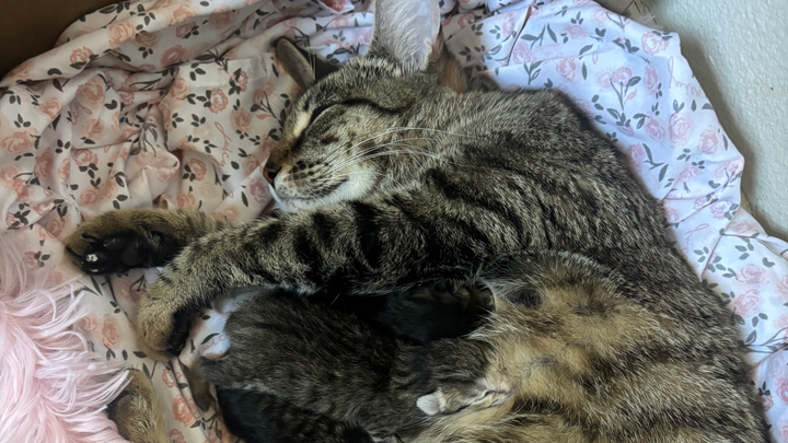 My roommate and I first met Yuki as a tiny stray kitten back in May. She quickly stole our hearts, and we began feeding her every day. Over time, we noticed her little belly growing and her behavior changing, and we soon realized she was pregnant. At such a young age and a kitty with no home, she was at risk.