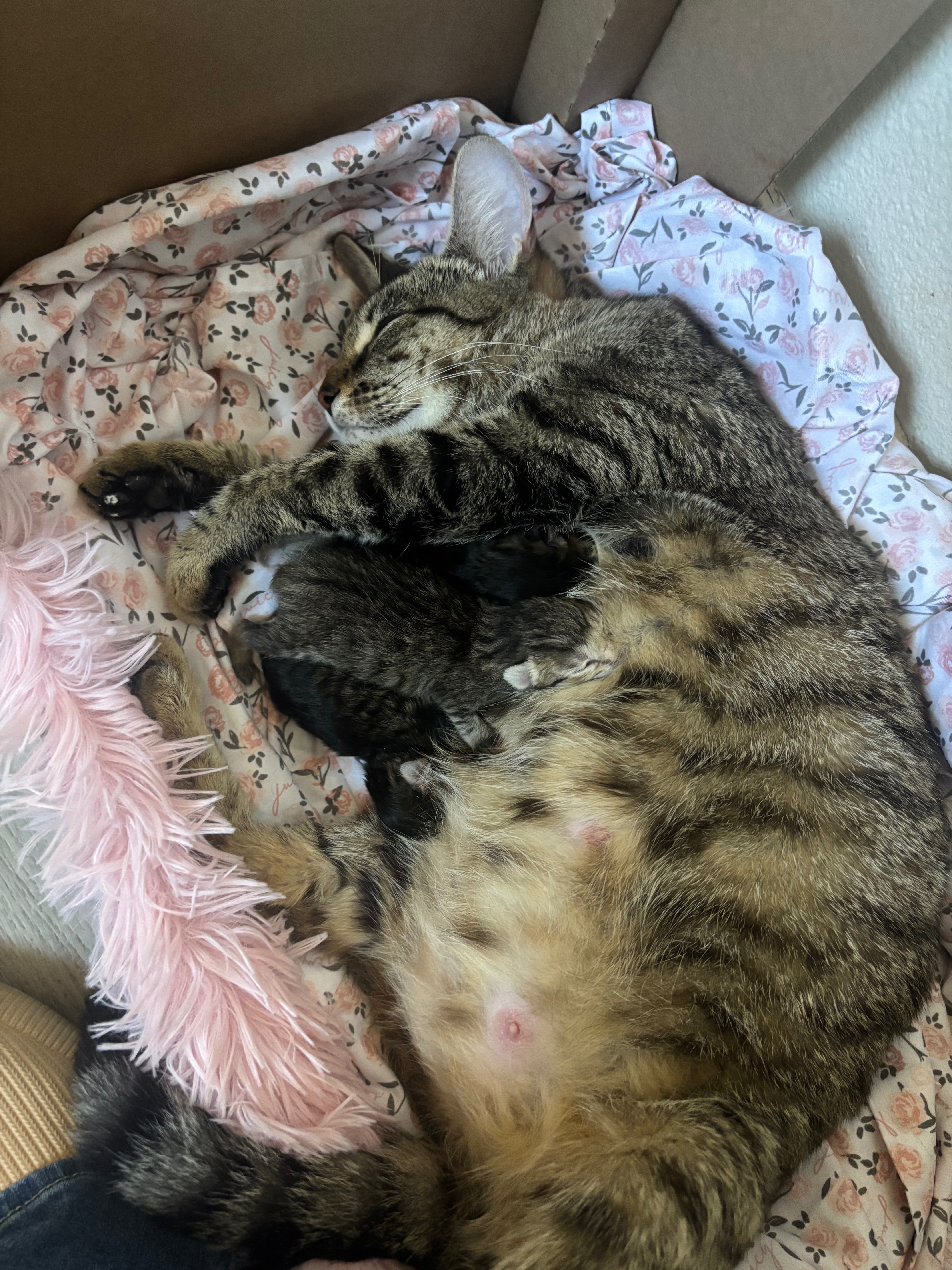 We reached out to every shelter we could, but we were met with the same heartbreaking responses: “We’re full” or “There’s nothing we can do.” When we finally got an appointment, the shelter warned us that the kittens would likely not survive in that environment. We couldn’t let that happen. So, we decided to foster Yuki ourselves and give her a safe place to bring her babies into the world.