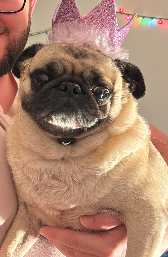 Maya, an 8-year-old emotional support pug, needs emergency transfusion funds