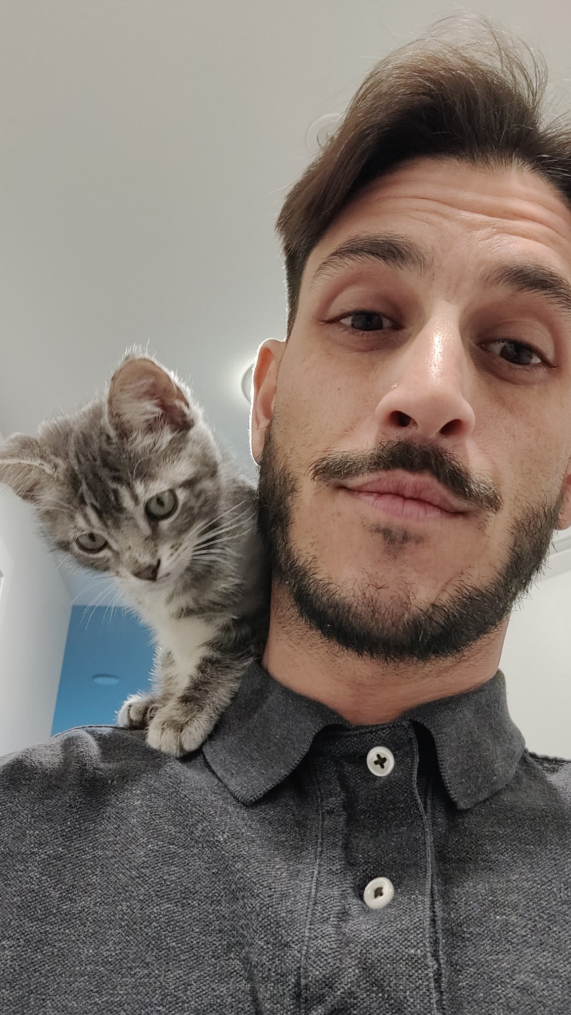 Mid-April of this year I found this precious kitten alone, in a bush on the side of the road, crying and with cuts on her face. Took her home with the intention rehousing her, long story short; we bonded, she became my companion and I decided to keep her.