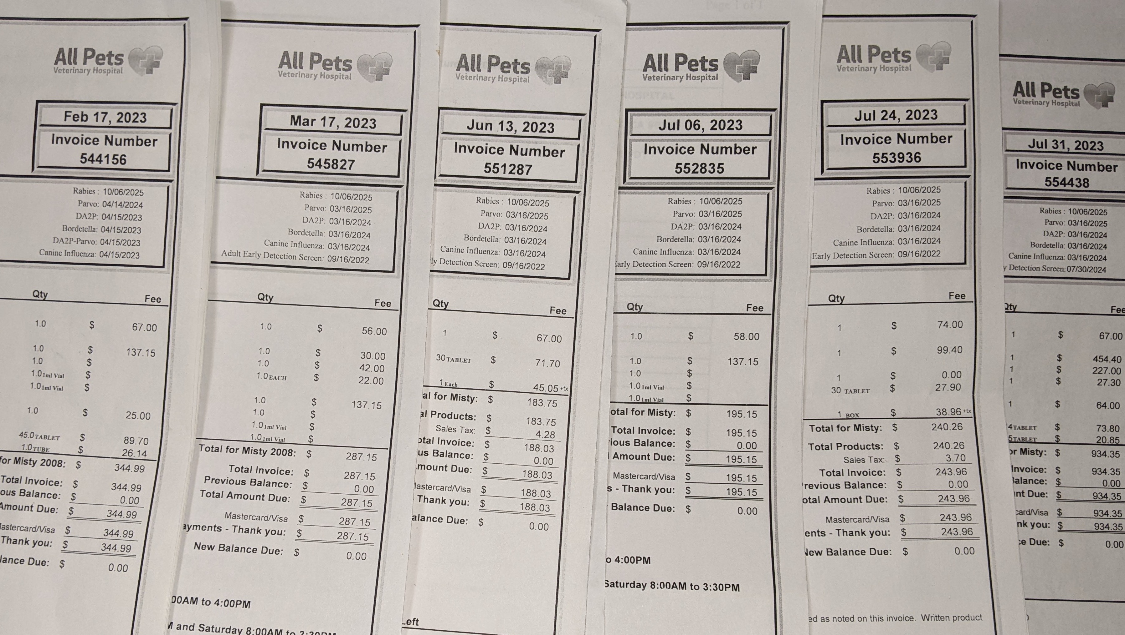Even before we visited the oncologist, we had spent $2193.63 solely on diagnosing Misty's health problems.