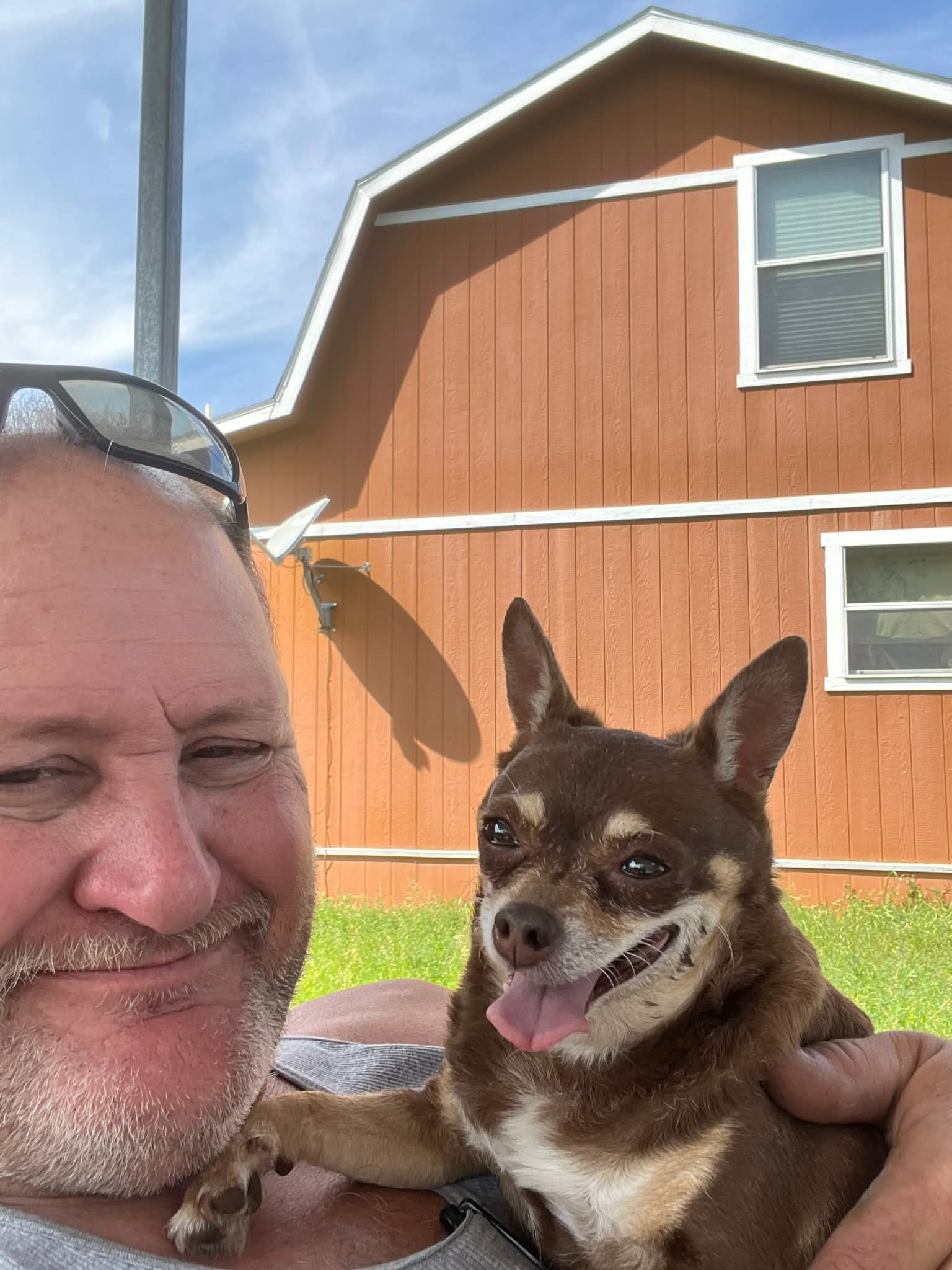 Tom and his sweet dog, Mocha, are truly inseparable. If you know Tom, you know Mocha—she’s always right by his side. She goes everywhere with him: visiting his parents, sitting in on doctor’s appointments, riding along to job sites, and spending time with friends. She isn’t just his dog—she’s his constant companion and family.