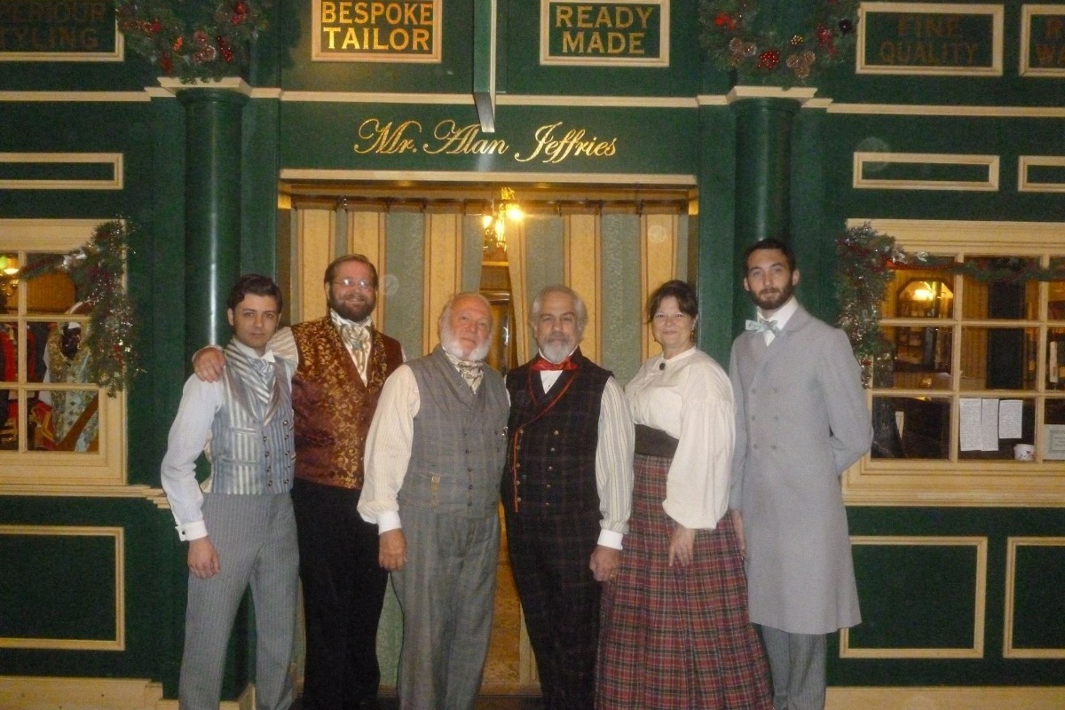 Many love the extraordinary work he does at Dickens Fair with men's Victorian fashion, including waistcoats, coats, trousers, cravats, and many others, and he does a thriving business during the 5-6 week run-of-fair; however, that is not his primary source of income.